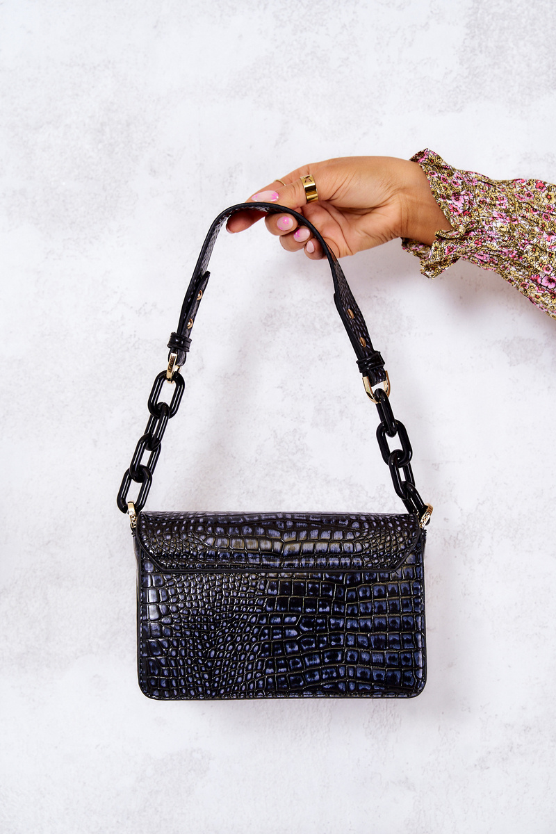 Torebka Listonoszka Wzór Krokodyl Czarna NOBO M0110-C020