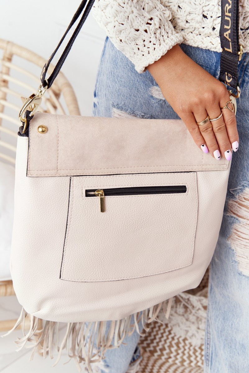 Torebka Listonoszka Z Frędzlami LAURA BIAGGI Beżowa