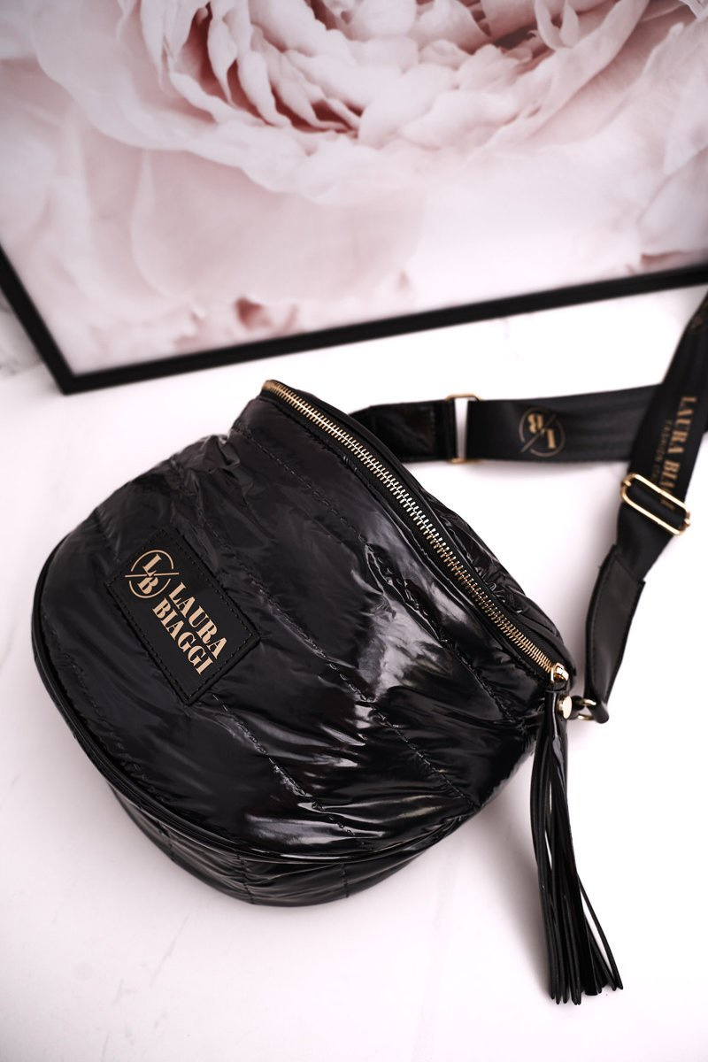 Torebka Listonoszka Z Frędzlami LAURA BIAGGI Błyszcząca Czarna