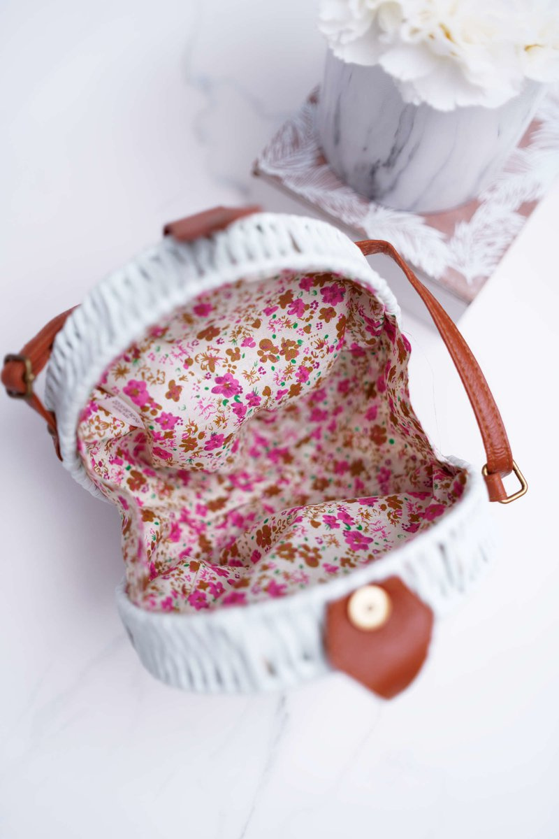 Nieodłącznym elementem kobiecej garderoby jest piękna torebka. Nasza propozycja wyróżnia się nie tylko pięknymi kolorami ale również delikatnym materiałem z jakiego została wykonana. Torebka jednokomorowa, okrągła zapinana na zatrzask. Wewnątrz znajduje się jedna duża kieszeń, wyścielona stylowym materiałem w kwiatowe motywy. Świetnie komponują się ze zwiewnymi sukienkami i trampkami.