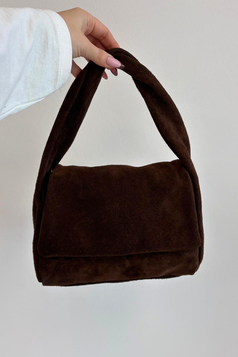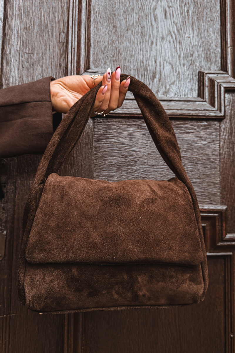 Torebka Z Naturalnego Zamszu Czekoladowa Monelle
