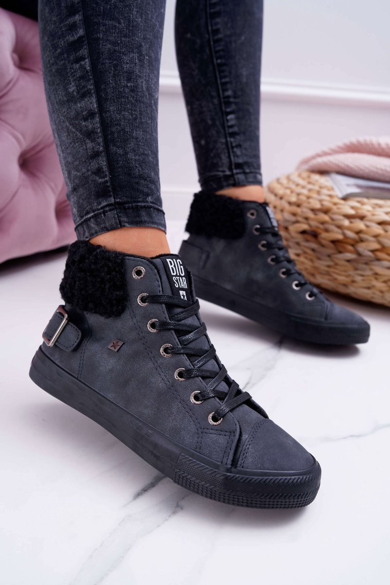 Trampki Damskie Big Star Wysokie Ocieplane Czarne EE274080
