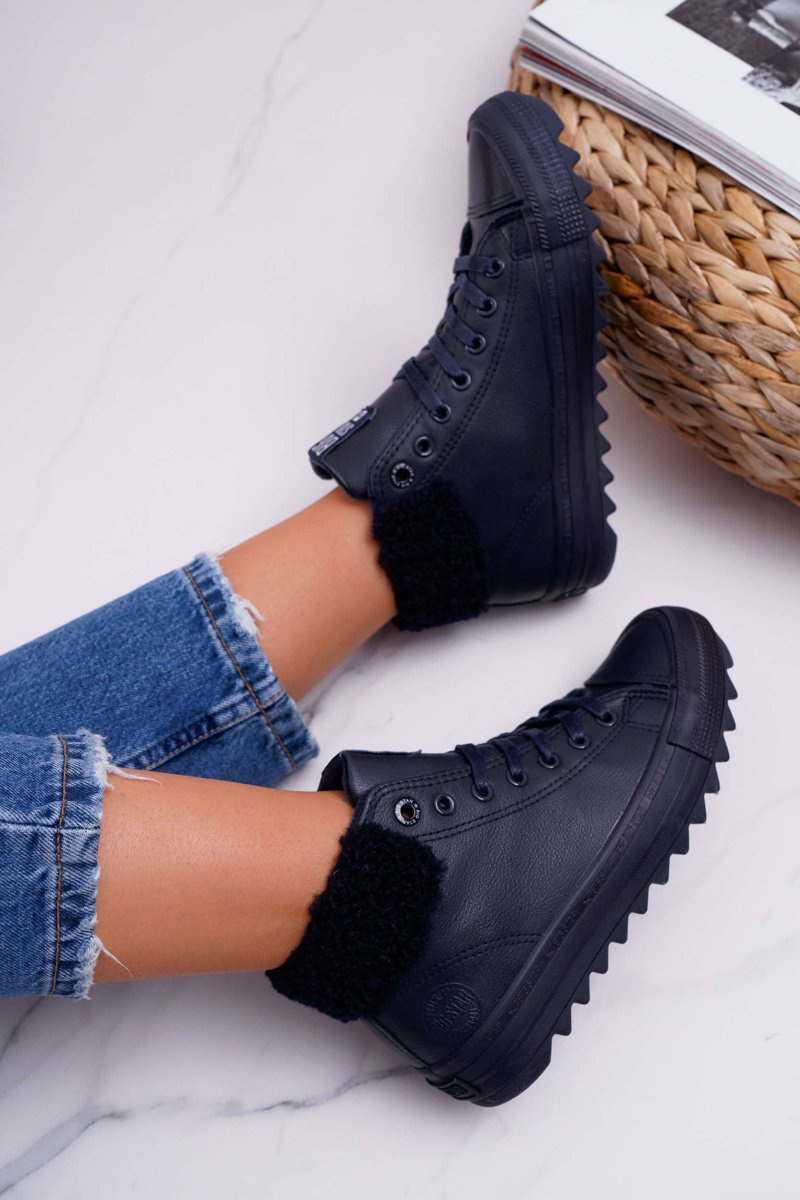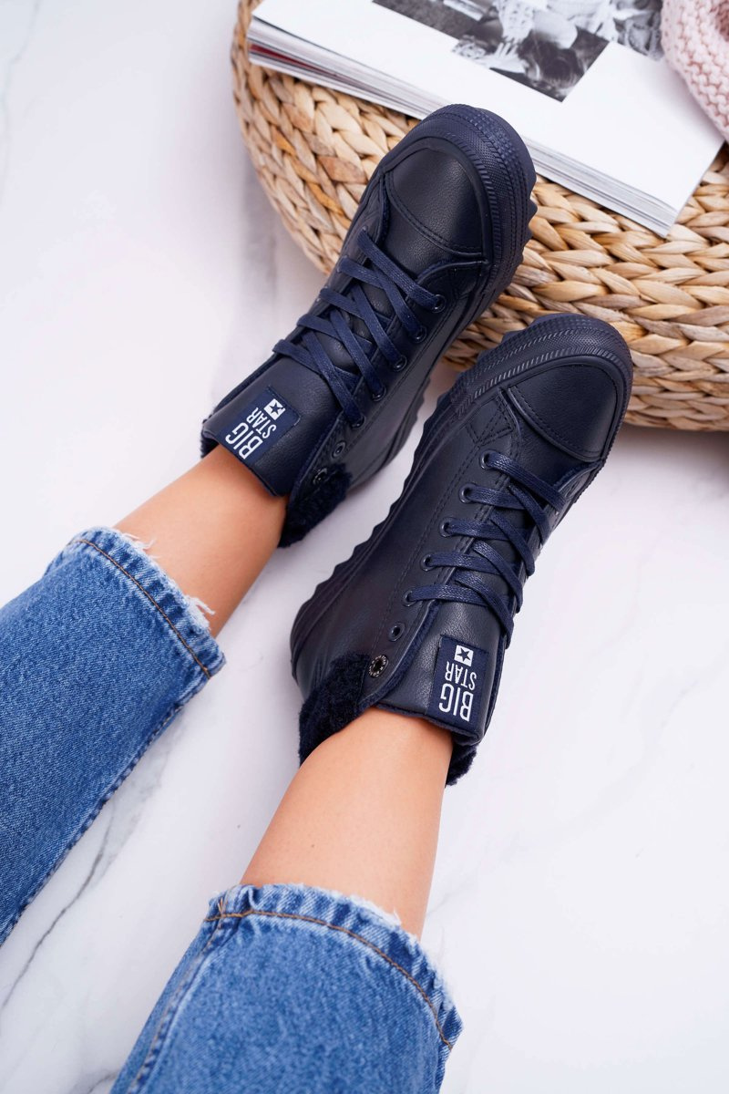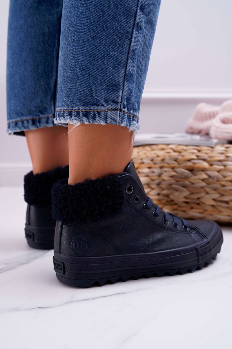 Trampki Damskie Big Star Wysokie Ocieplane Granatowe EE274147
