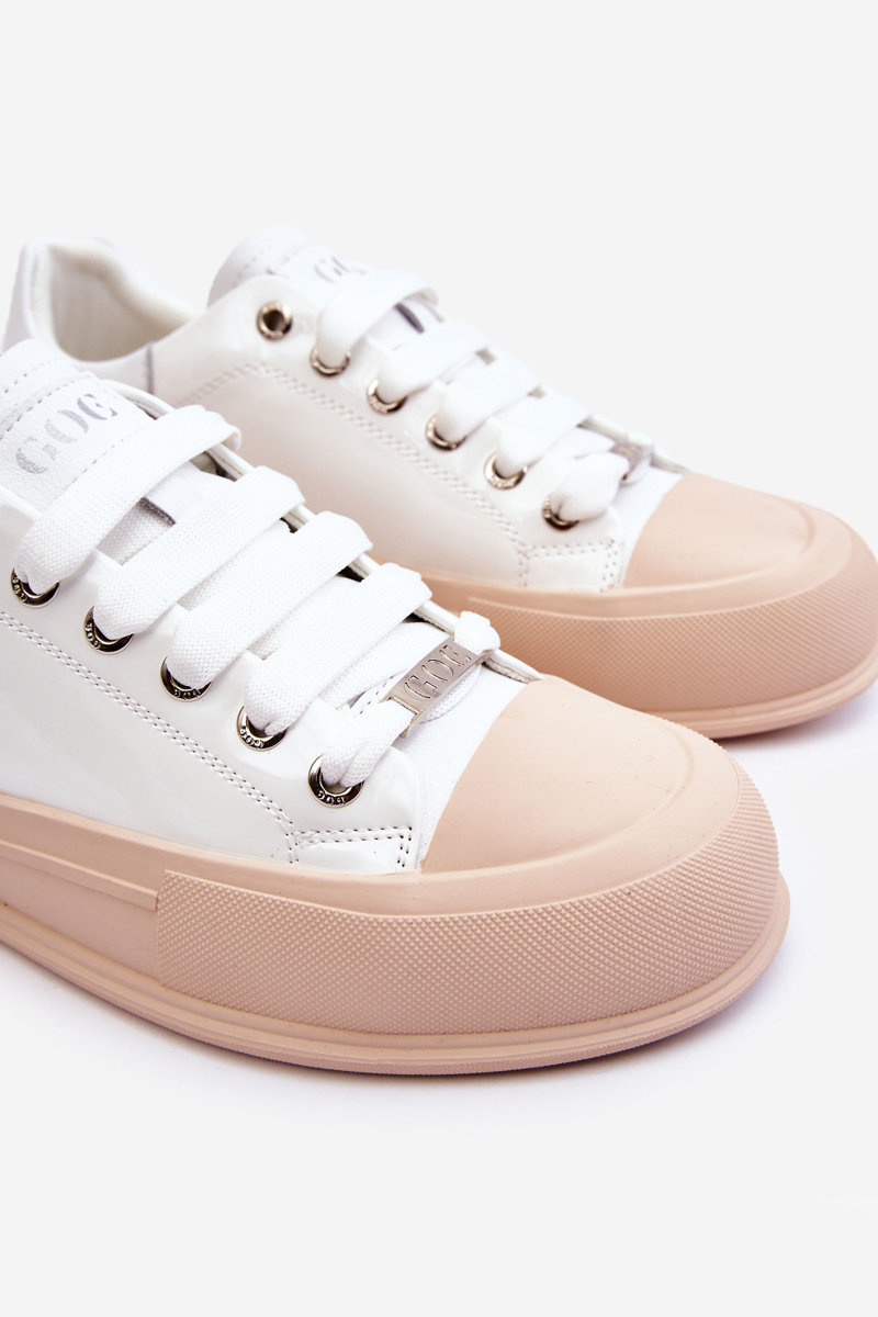 Trampki Damskie Lakier Platforma Białe GOE LL2N4020