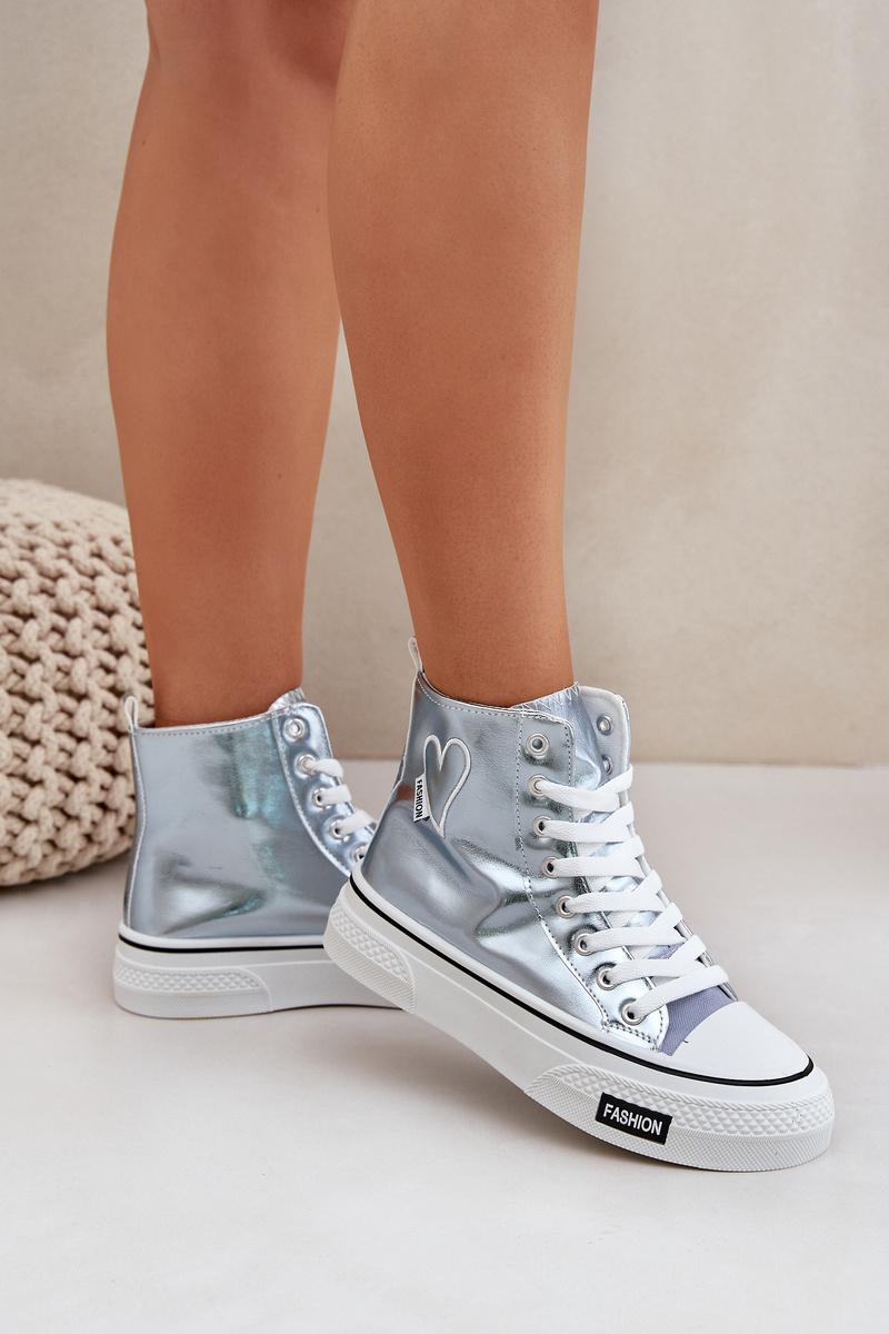 Trampki Damskie Metaliczne Wysokie Serce Niebieskie Sumehra