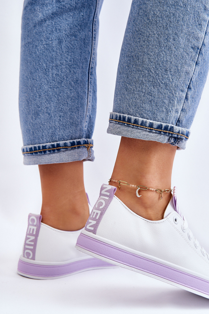 Trampki Damskie Niskie Klasyczne Biało-Fioletowe Ville