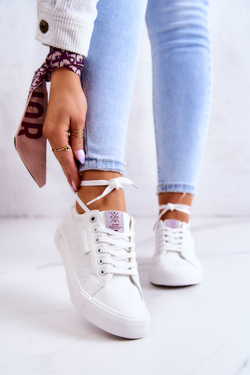 Trampki Damskie Skórzane Wiązane Białe Cross Jeans JJ2R4043C