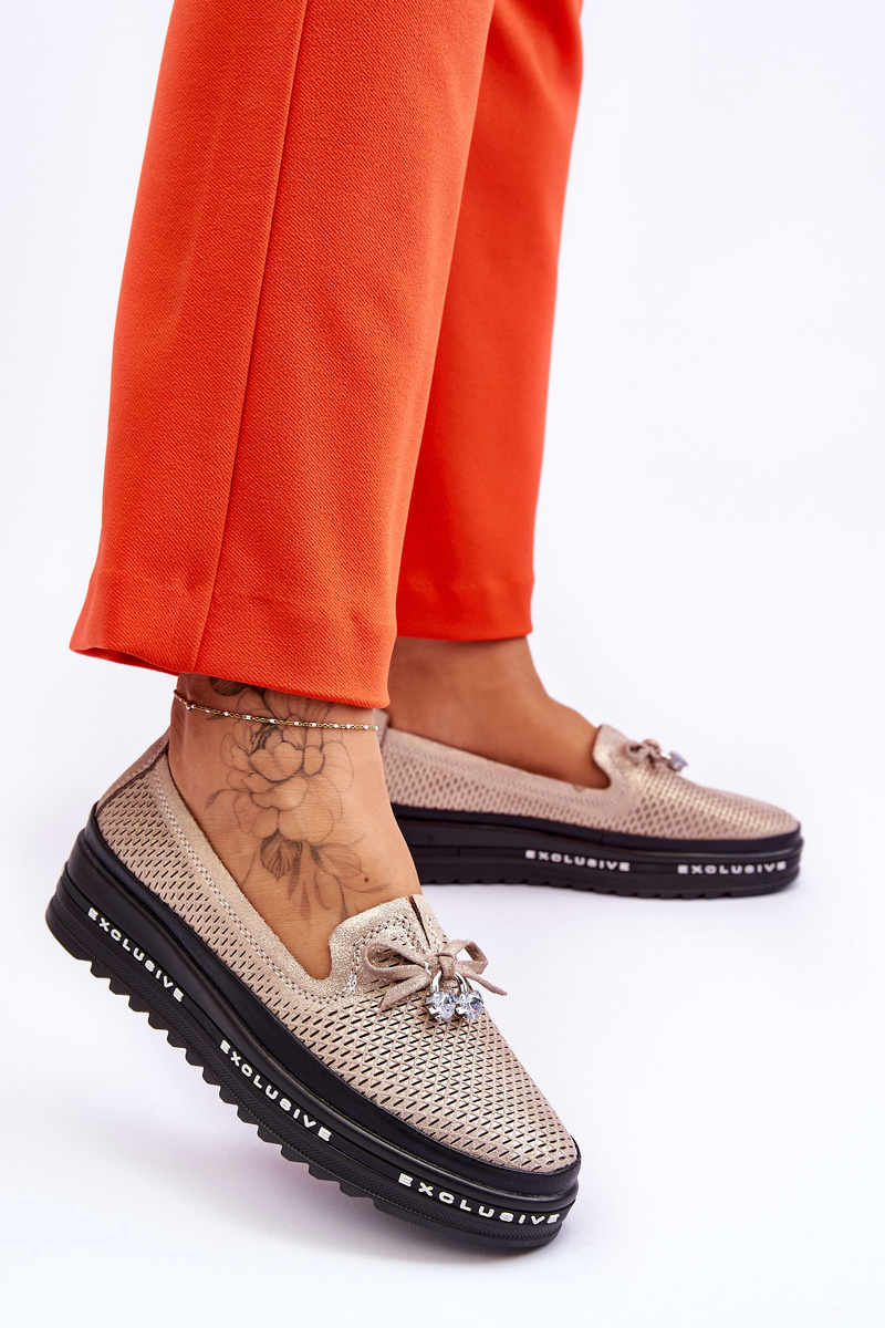 Trampki Damskie Wsuwane Skóra Błyszczące Złote Raven