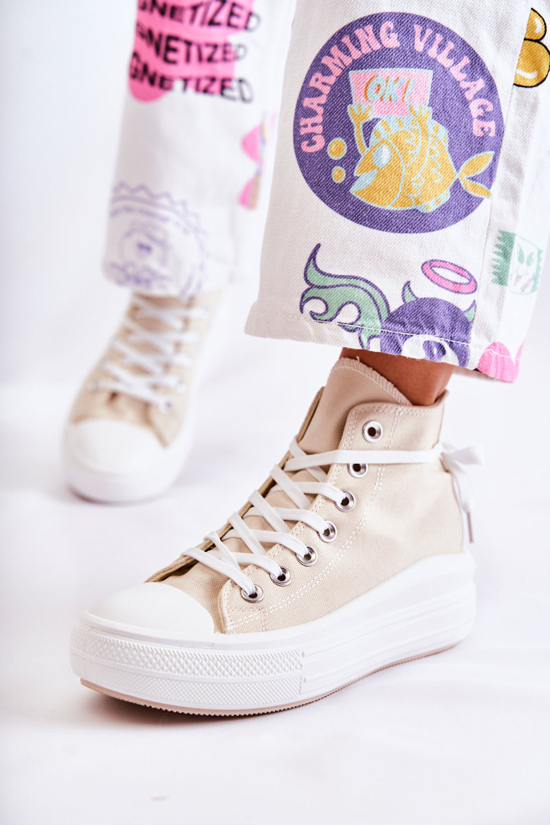 Trampki Damskie Wysokie Wiązane Beżowe Carlyn