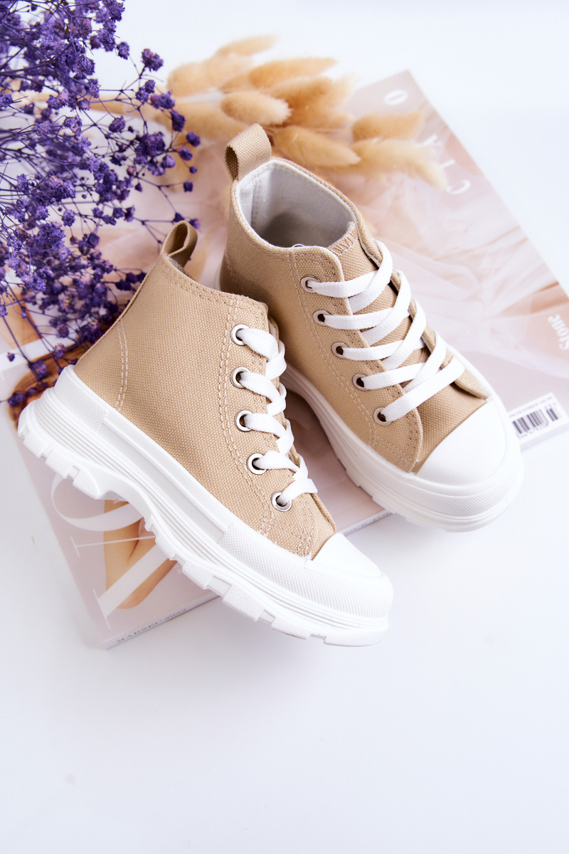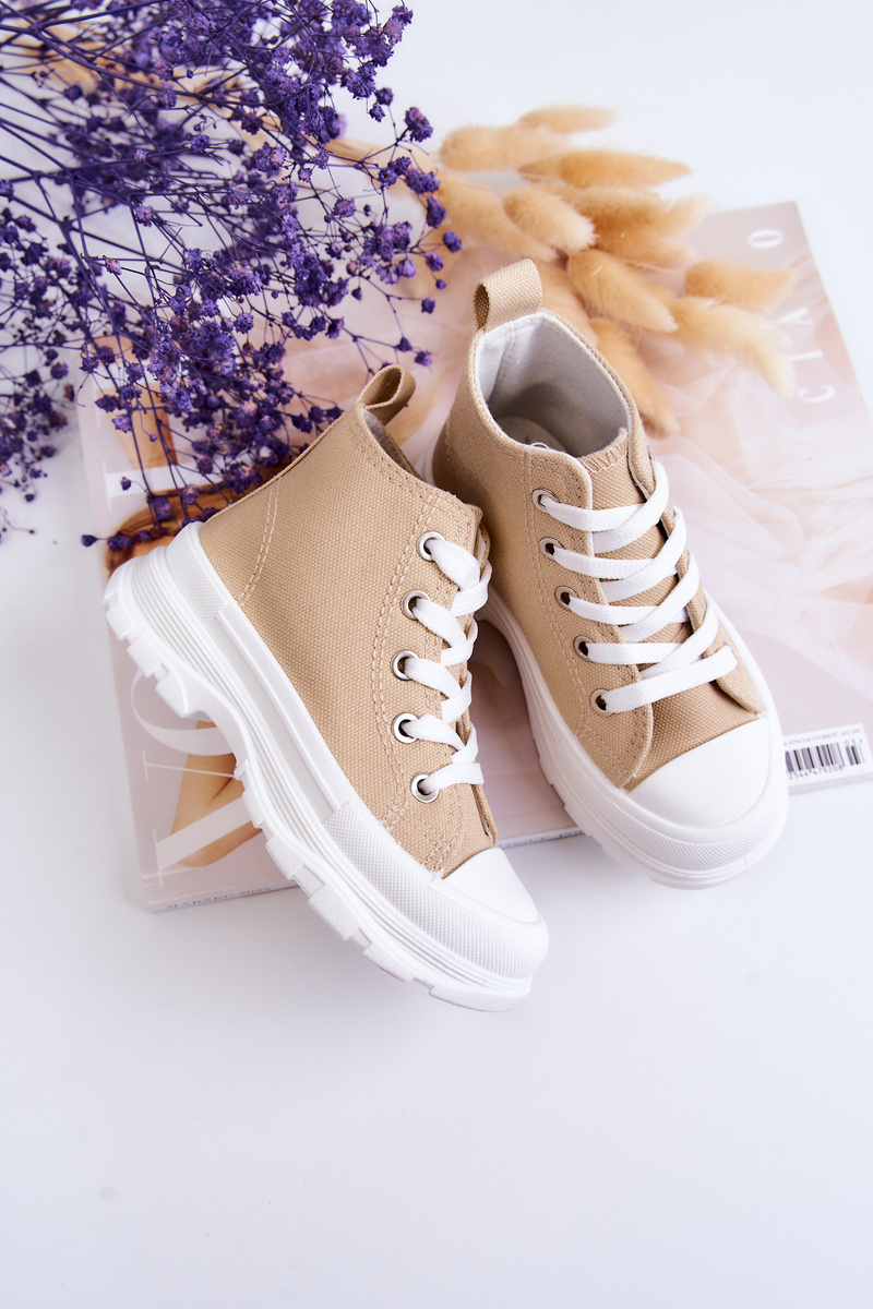 Trampki Dziecięce Wysokie Sznurowane Beżowe Freeze