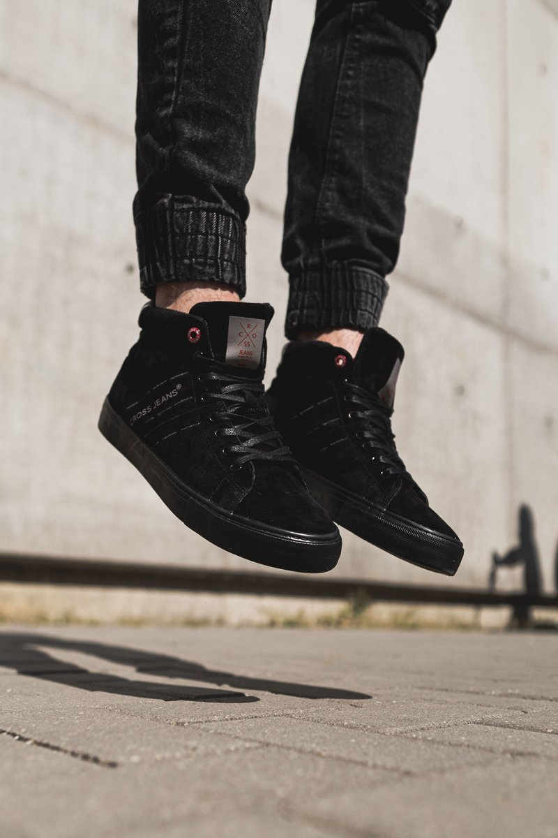 Trampki Męskie Cross Jeans Wysokie Skóra Zamsz Czarne EE1R4057C