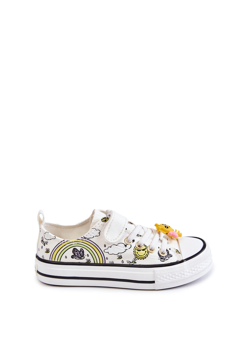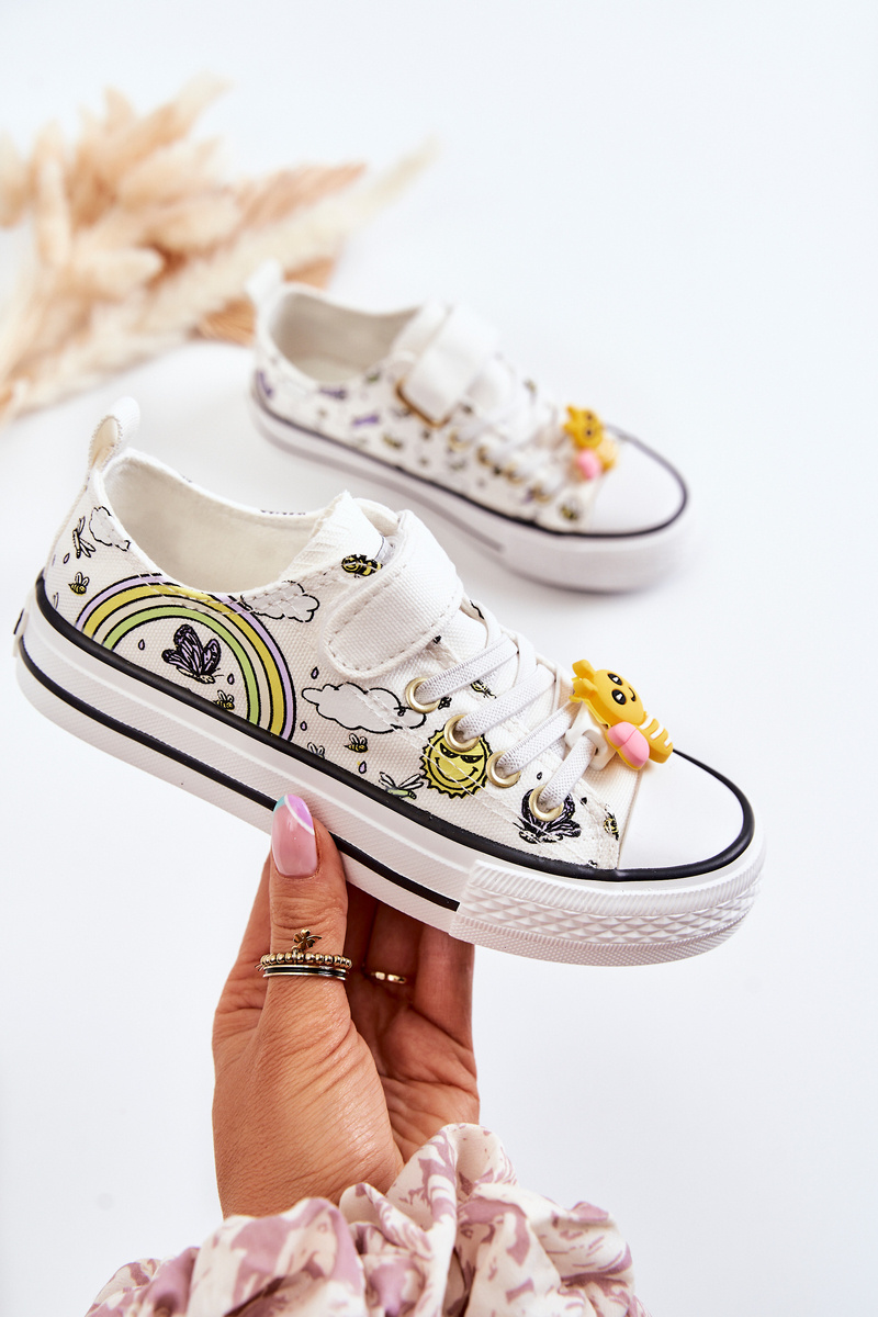 Trampki Na Rzep Dziecięce Print Białe Lace