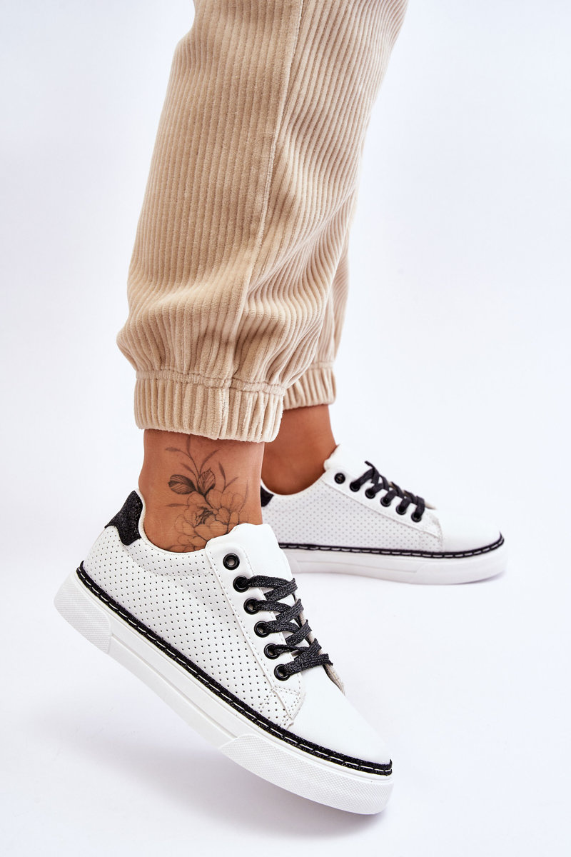 Trampki Niskie Damskie Perforacja Biało-Czarne  Daxton