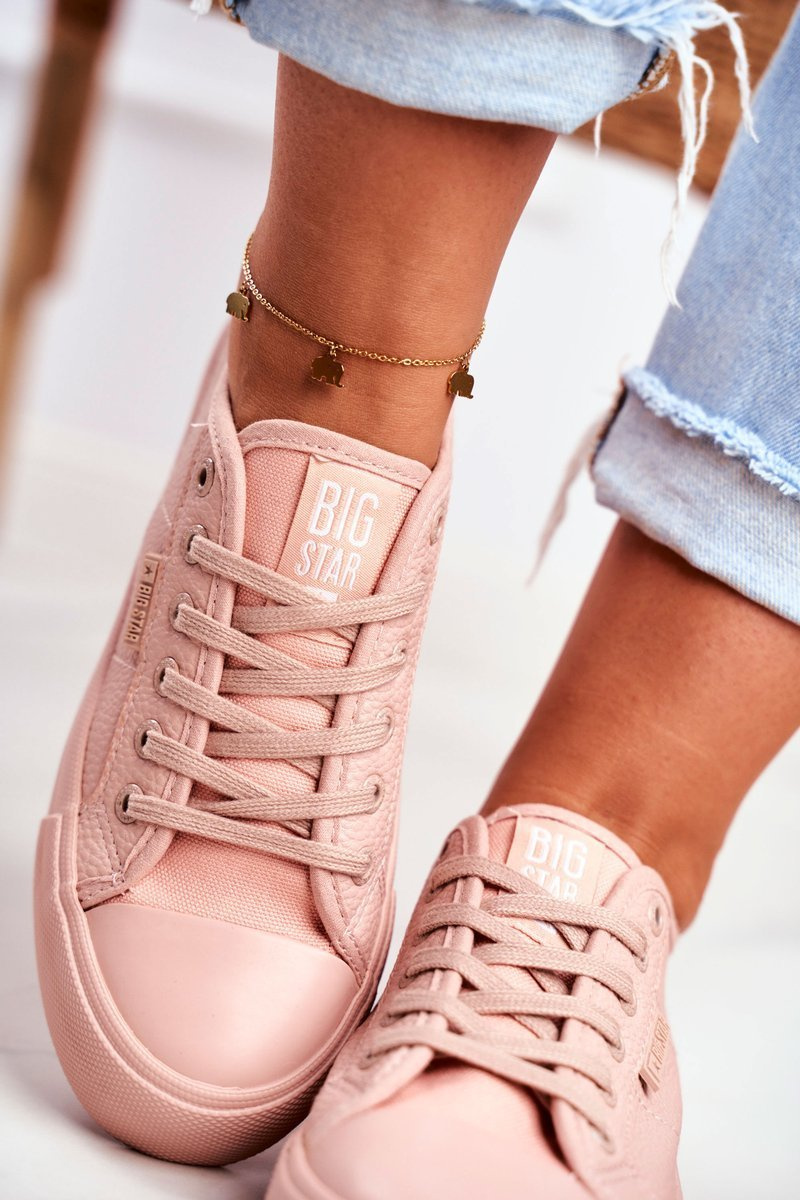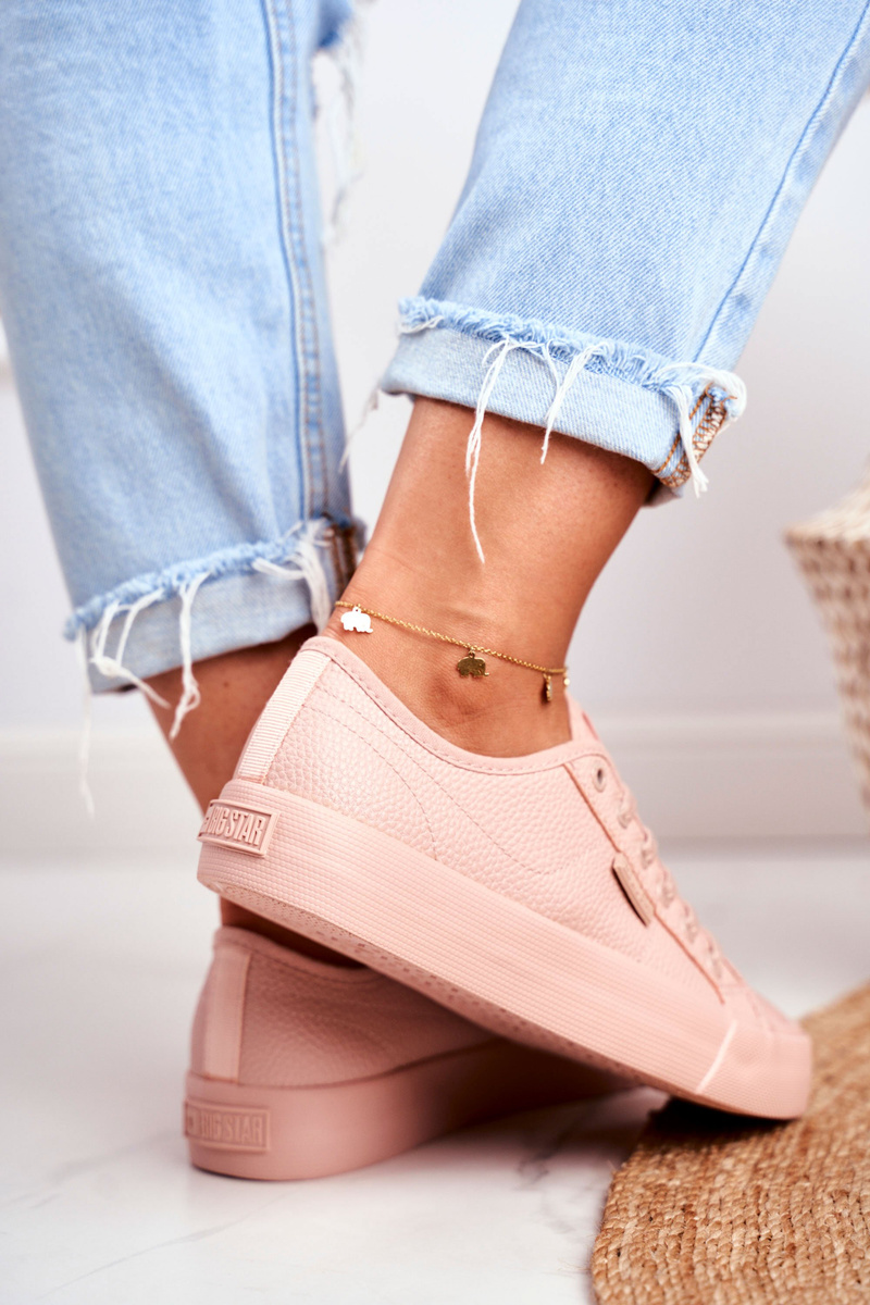 Rewelacyjne trampki damskie Big Star to klasyka gatunku. Wygodne, uniwersalne trampki powinny znaleźć się w szafie każdej kobiety. Możesz zestawić je zarówno ze spodniami, jak i sukienkami czy spódnicami. Wykonane z eko skóry. Model wiązany. Płaska podeszwa zapewnia stabilność. Koniecznie powinnaś je mieć!