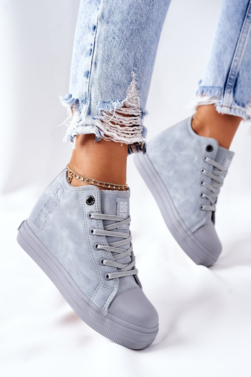 Trampki Skórzane Ukryty Koturn Big Star Niebieskie II274094