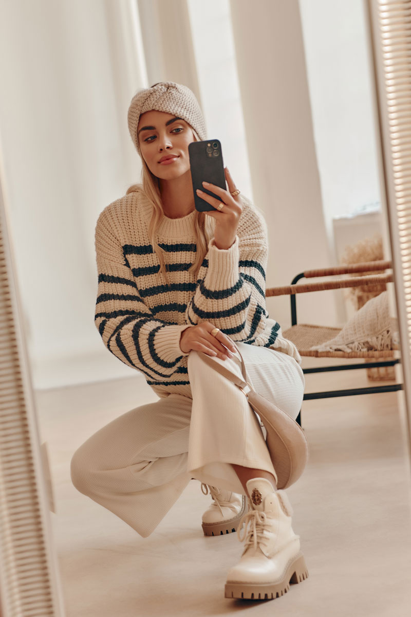 Uwielbianym i najczęściej wybieranym modelem przez kobiety są botki na płaskim, stabilnym obcasie. Posiadają wiele atutów, jednak głównym z nich jest zapewnienie wysokiego komfortu podczas noszenia. Wykonane z wysokiej jakości naturalnych skór. Trapery posiadają u góry cholewki kożuszek. Model ze sznurowaniem oraz suwakiem. Botki zostały osadzone na masywnym obcasie i platformie ze żłobieniami. W środku posiadają ocieplenie z wełny.