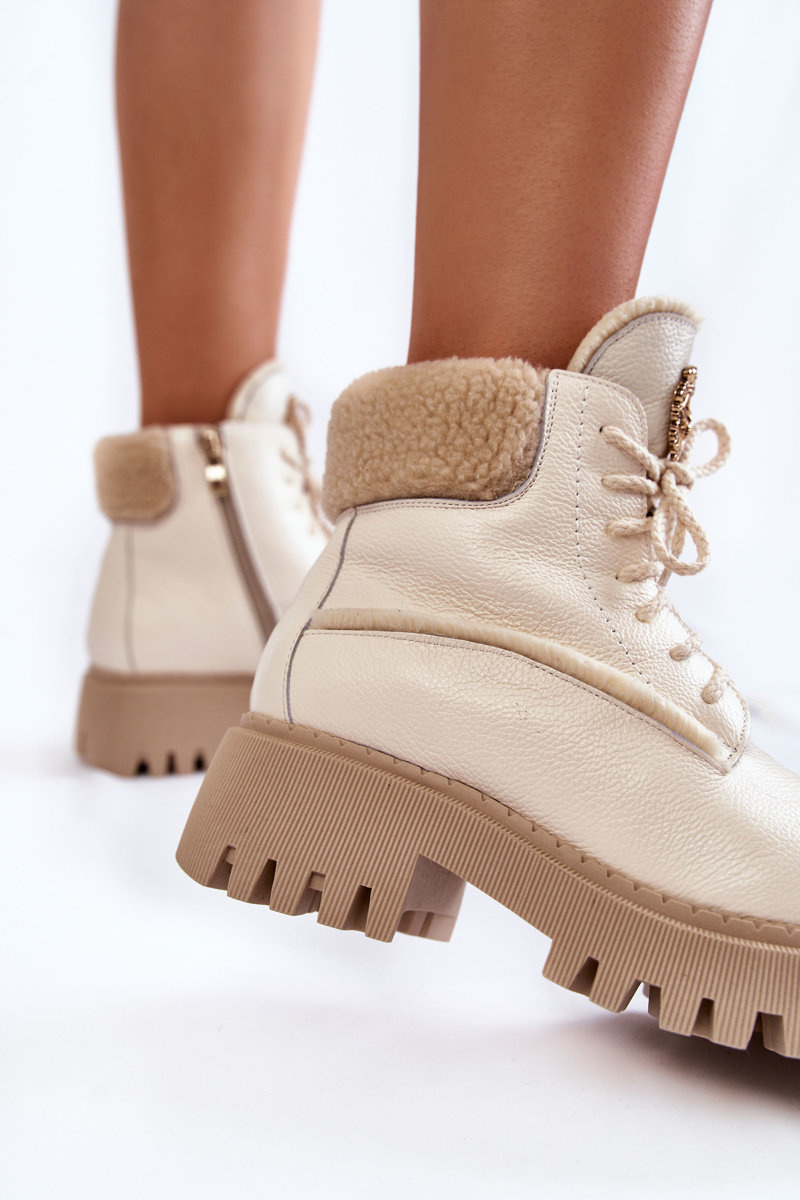 Trapery Botki Damskie Skóra Jasnobeżowe Lemar Vergo