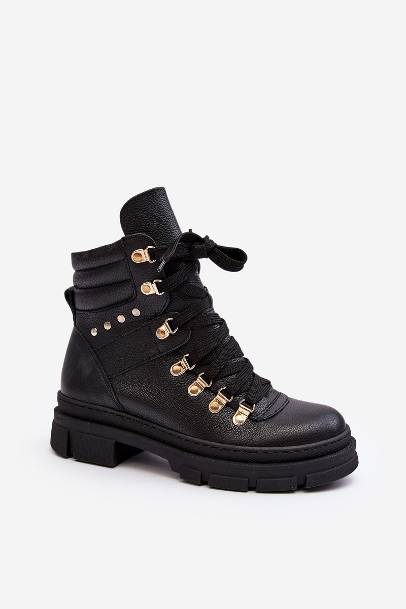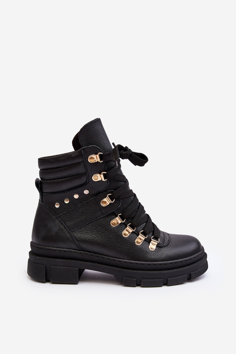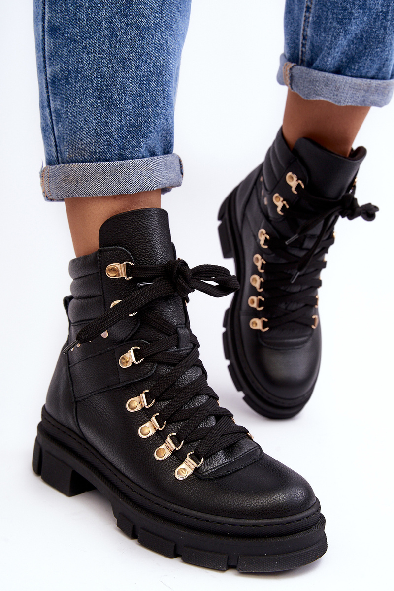 Trapery Botki Damskie Skóra Sznurowane Czarne Zazoo K01