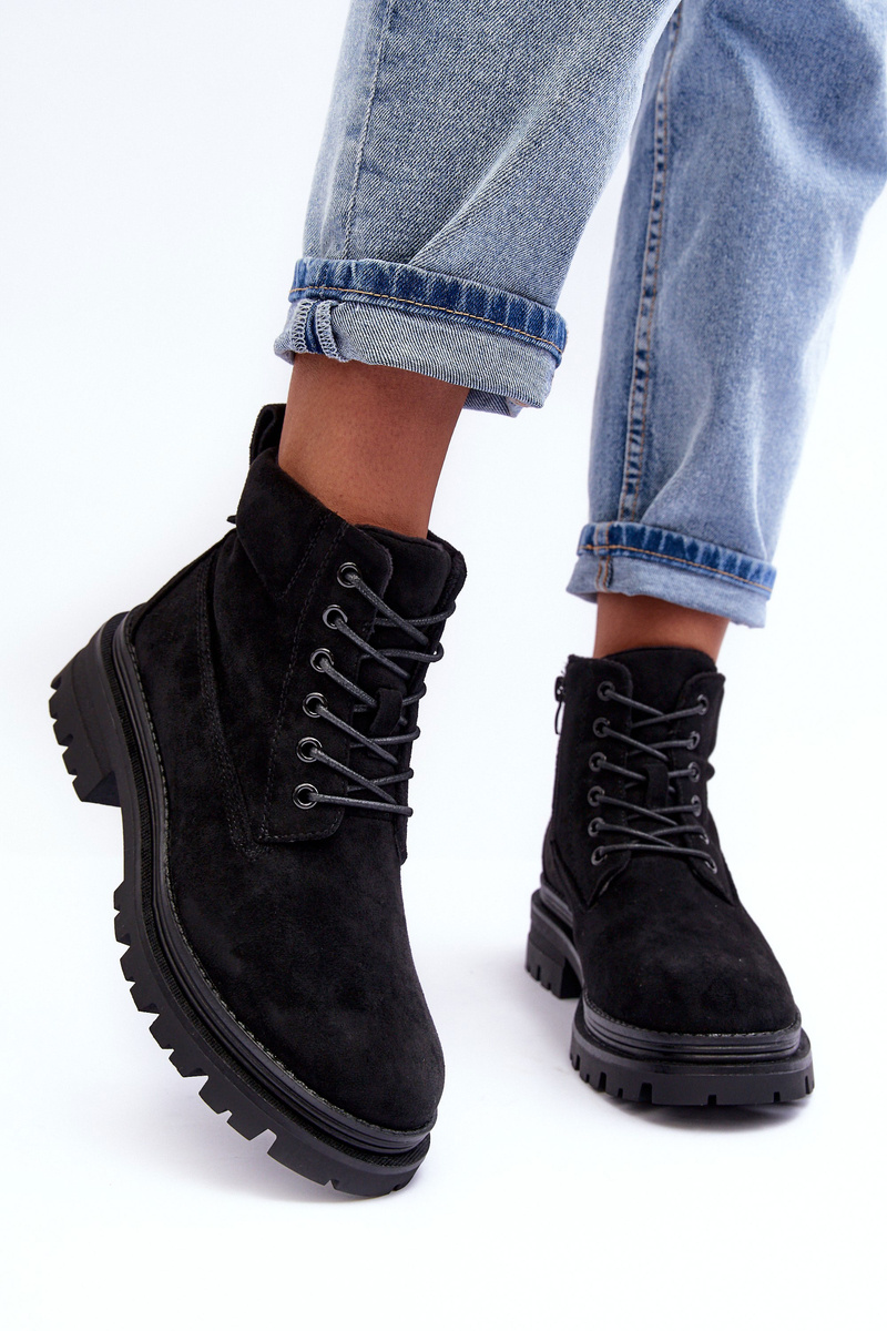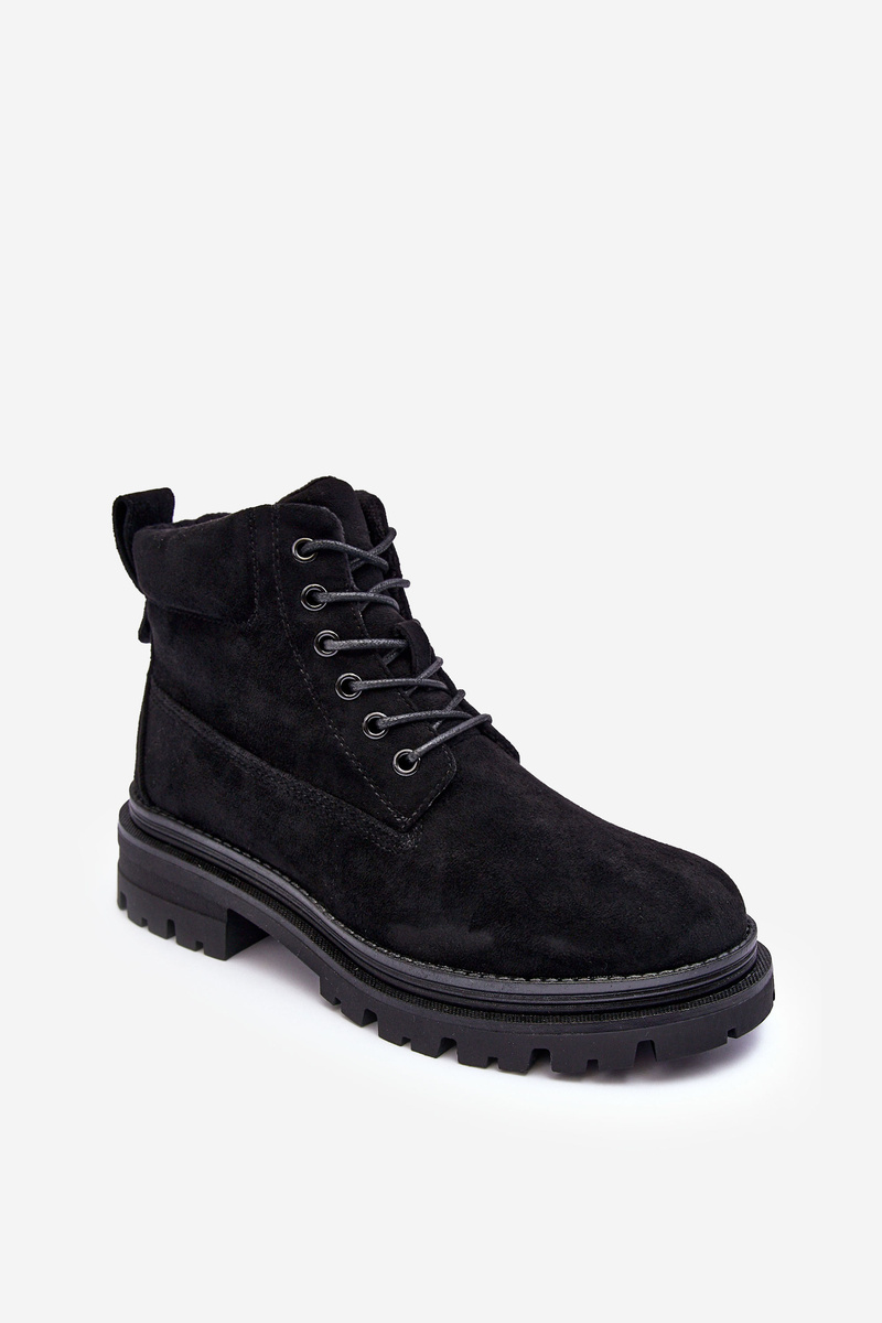 Trapery Botki Ocieplane Zamsz Czarne Alden A5201