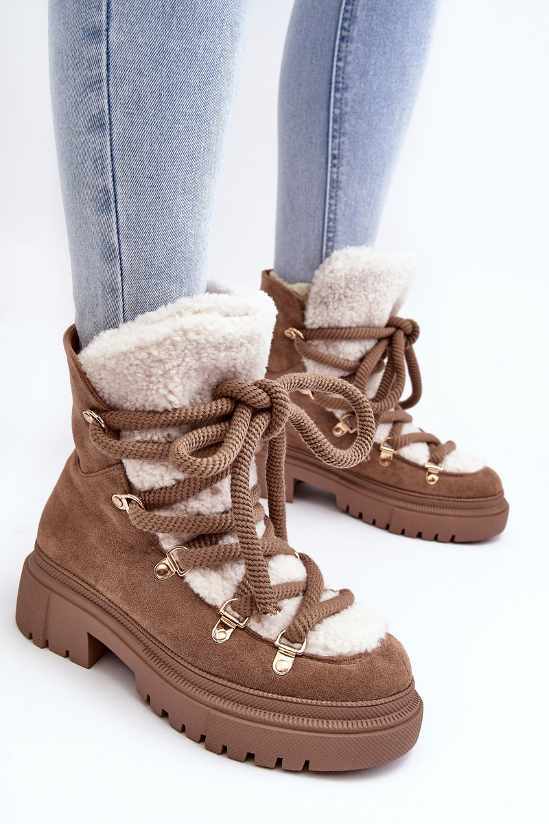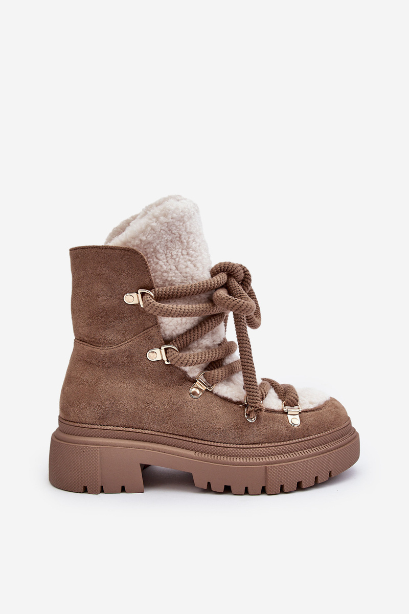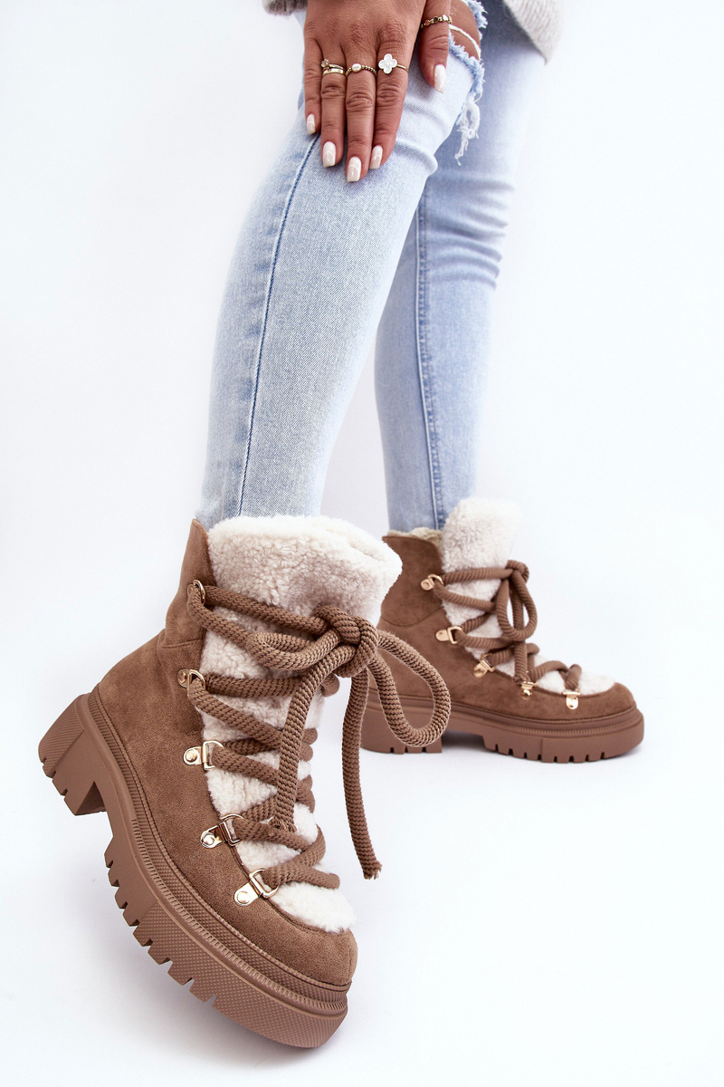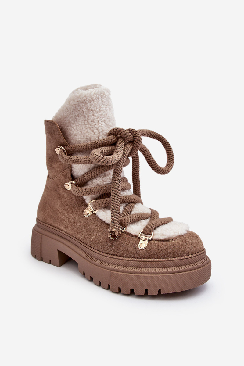 Trapery Śniegowce Damskie Wiązane Beżowe Shala JJ53P