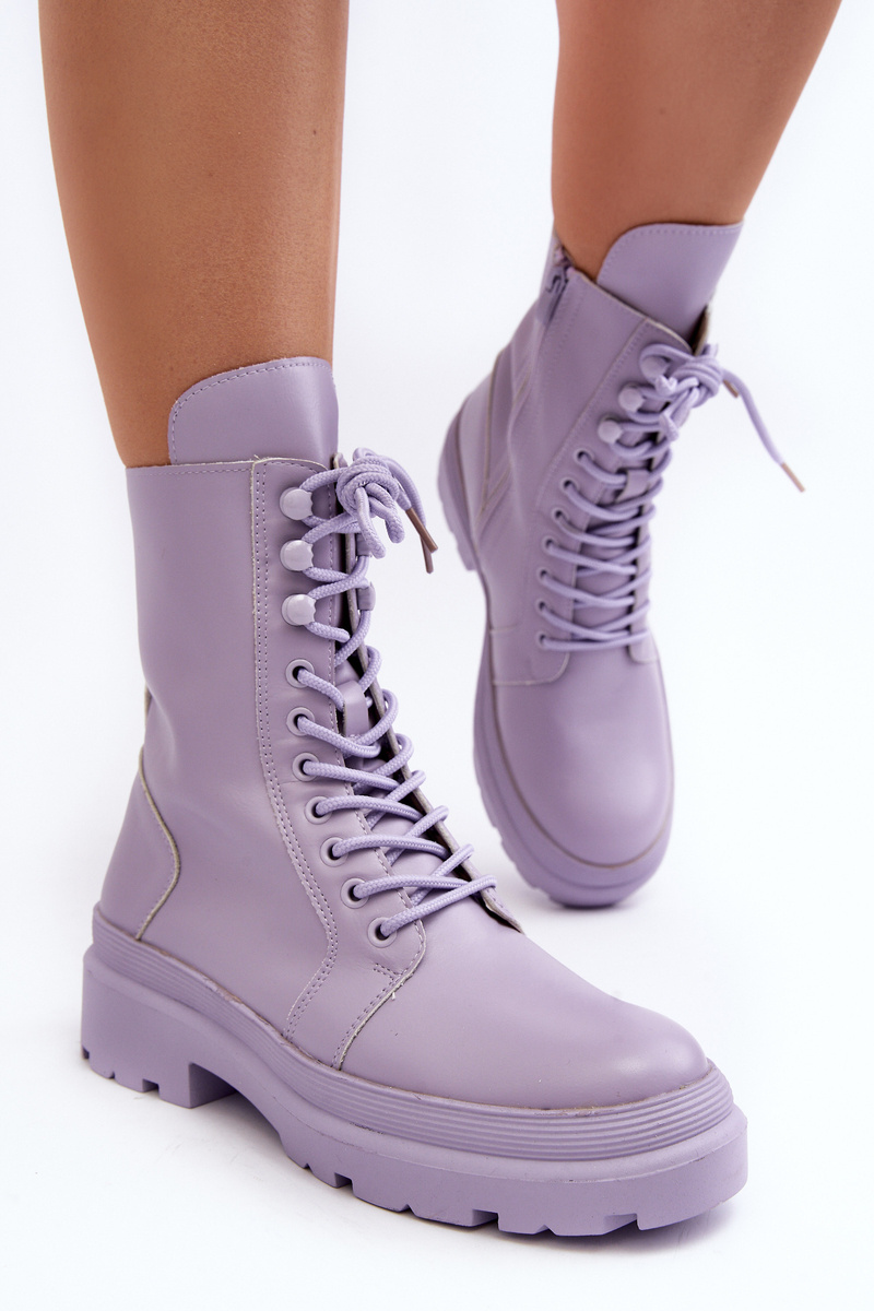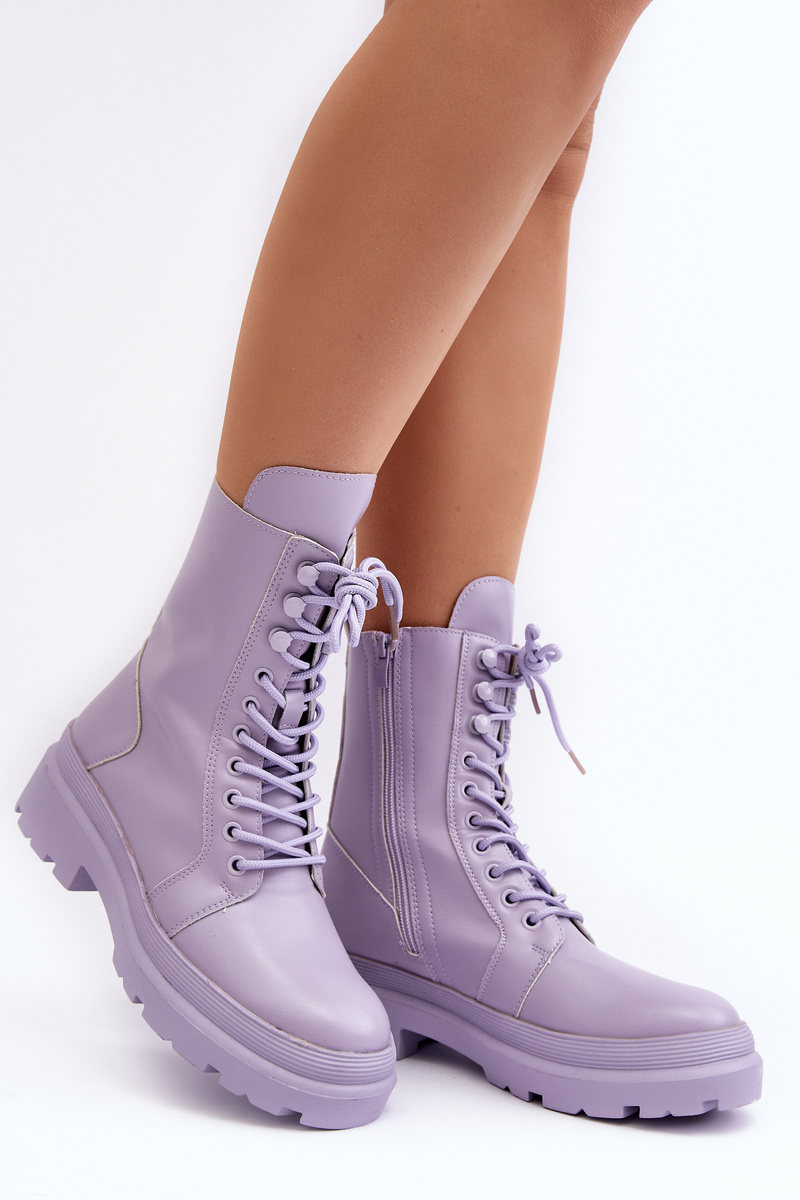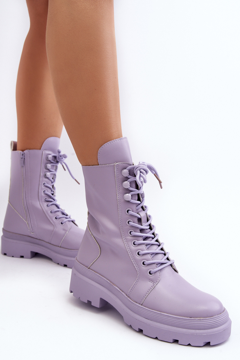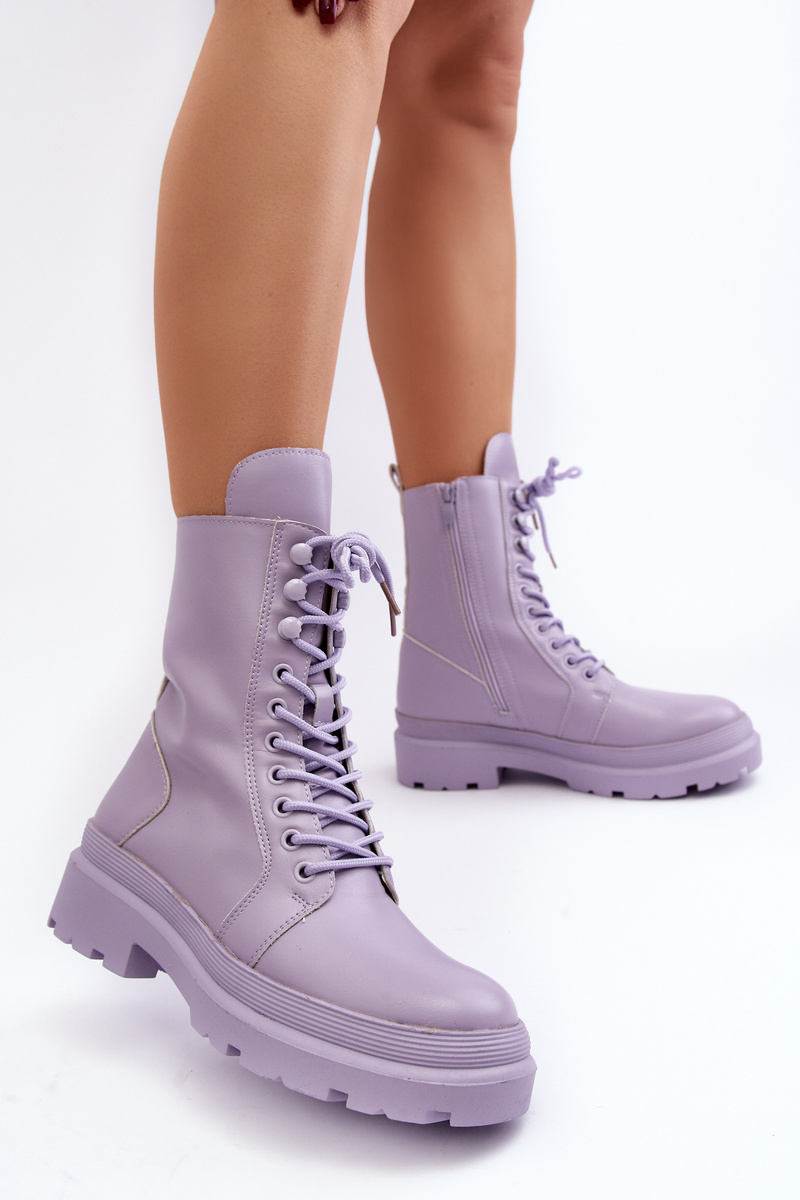 Workery Botki Damskie Ekoskóra Fioletowe Irande MP326