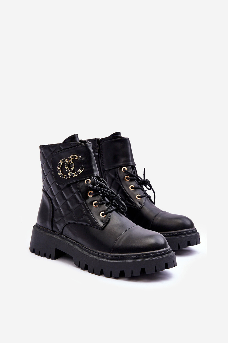 Workery Botki Damskie Ozdoba Czarne Toye H21-73