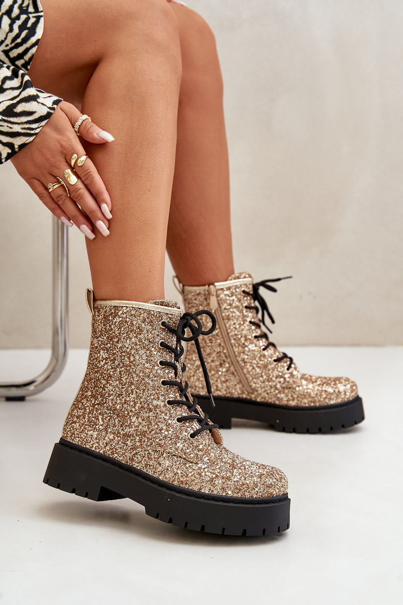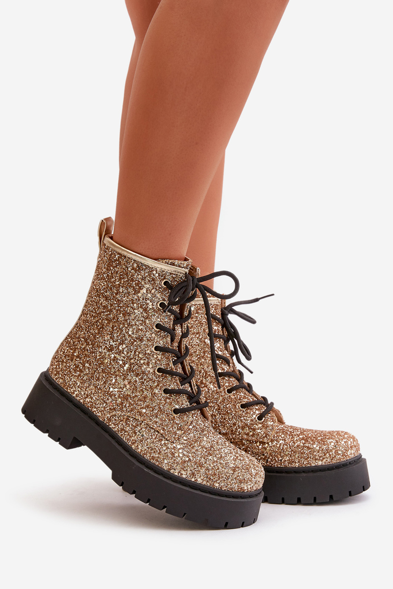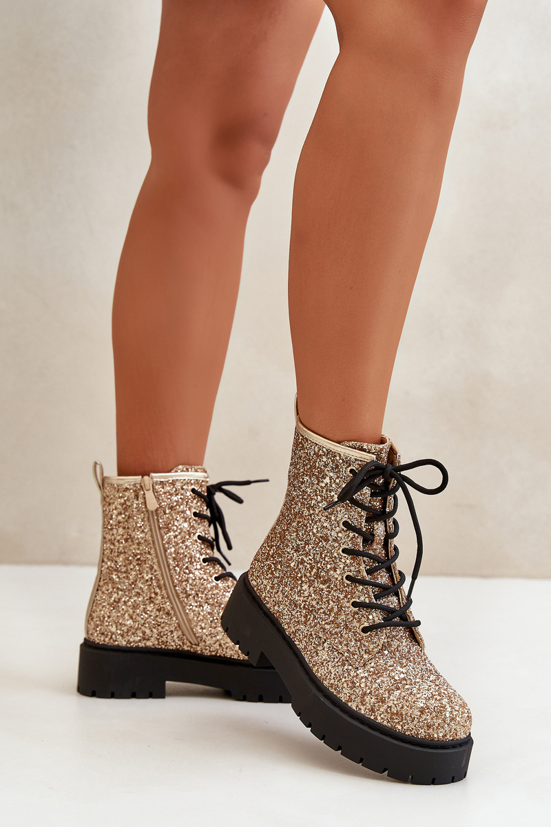 Workery Botki Ocieplane Z Cekinami Złote Liatheine