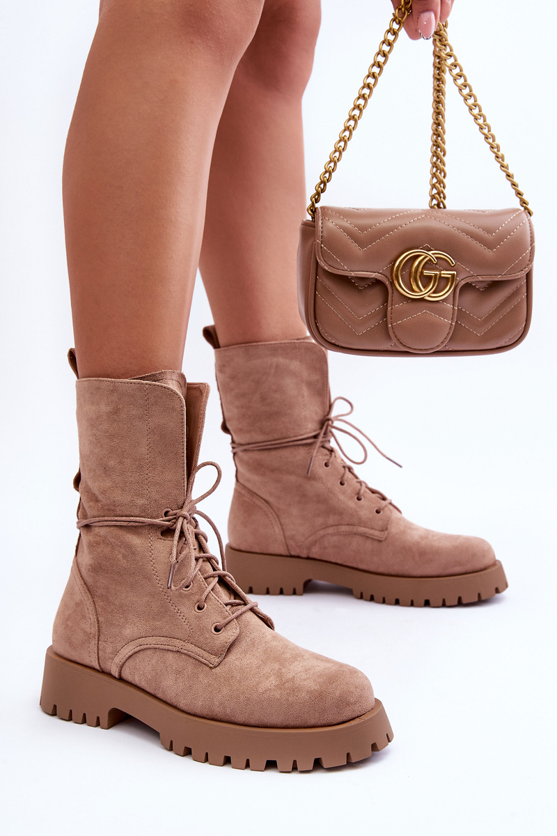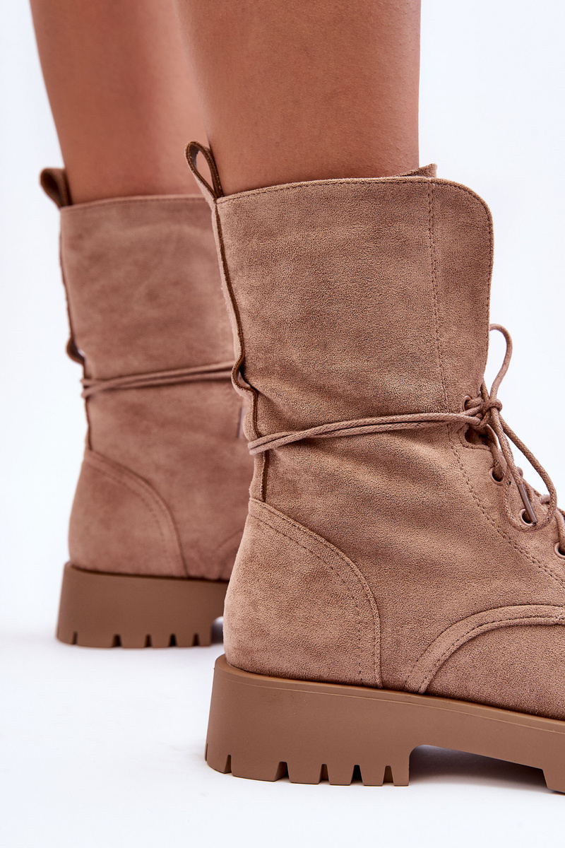Workery Botki Zamsz Płaski Obcas Beżowe Jence DE1551S