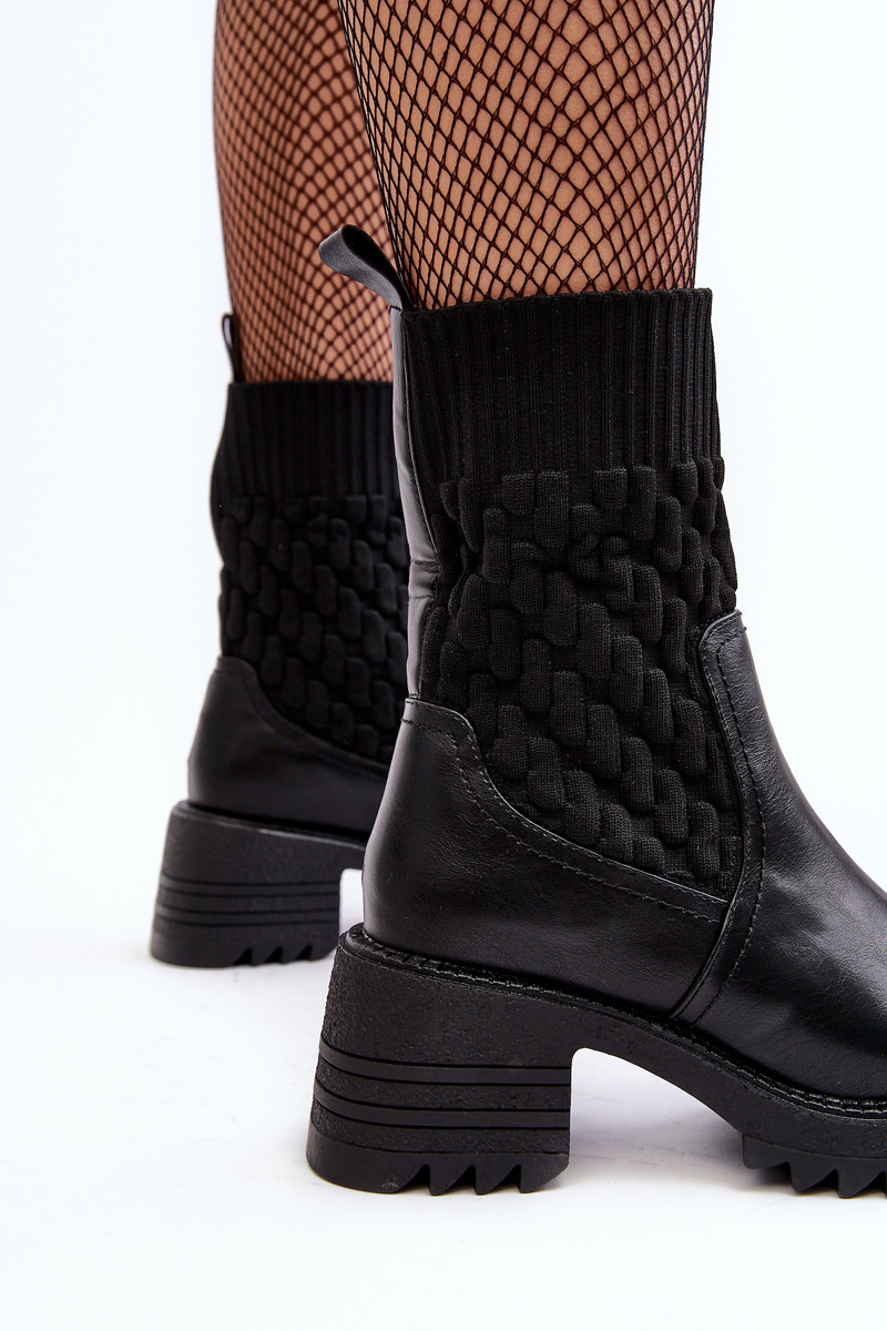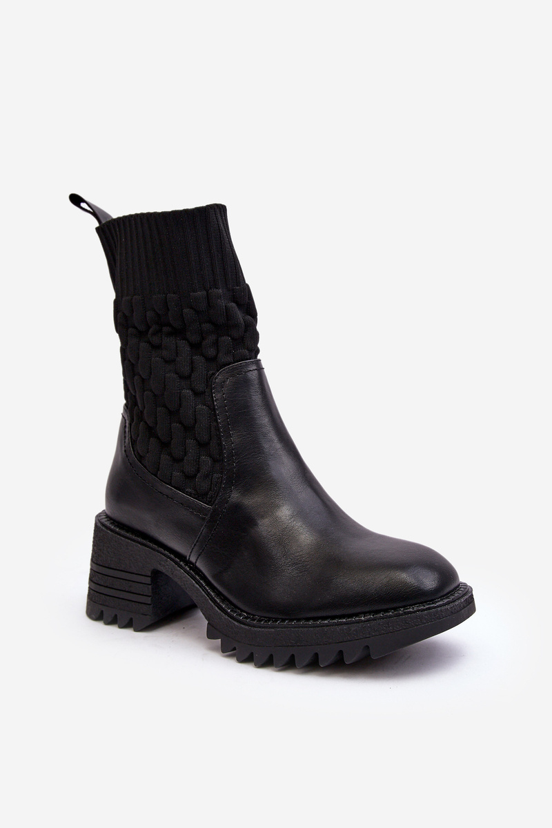 Workery Botki Ze Skarpetą Masywny Obcas Czarne Briogen M618