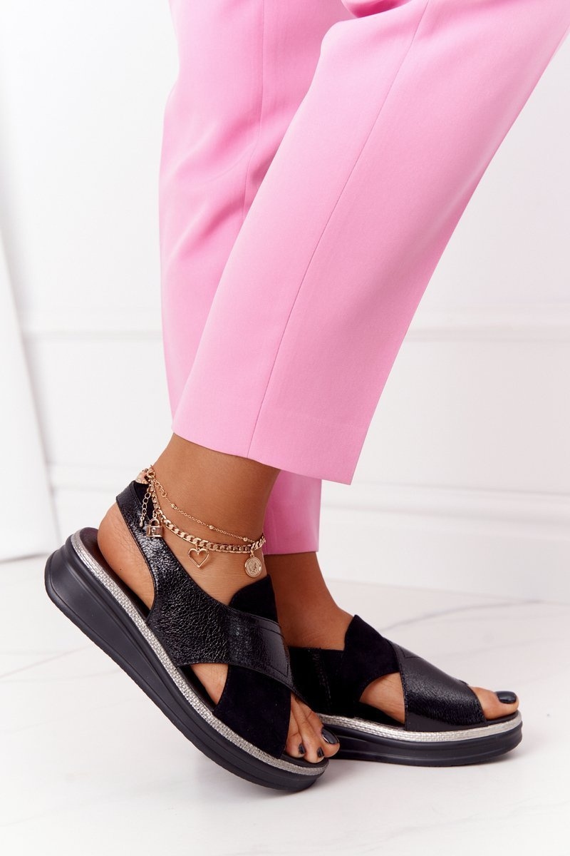 Wsuwane Sandały Na Platformie Sergio Leone SK029 Czarne