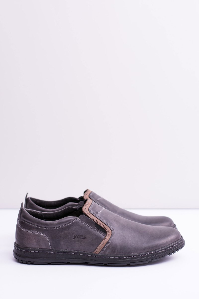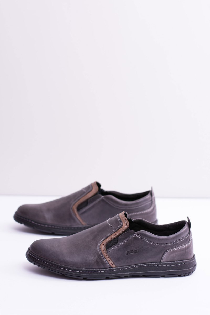 Wsuwane Skórzane Męskie Półbuty Leonidas Szare