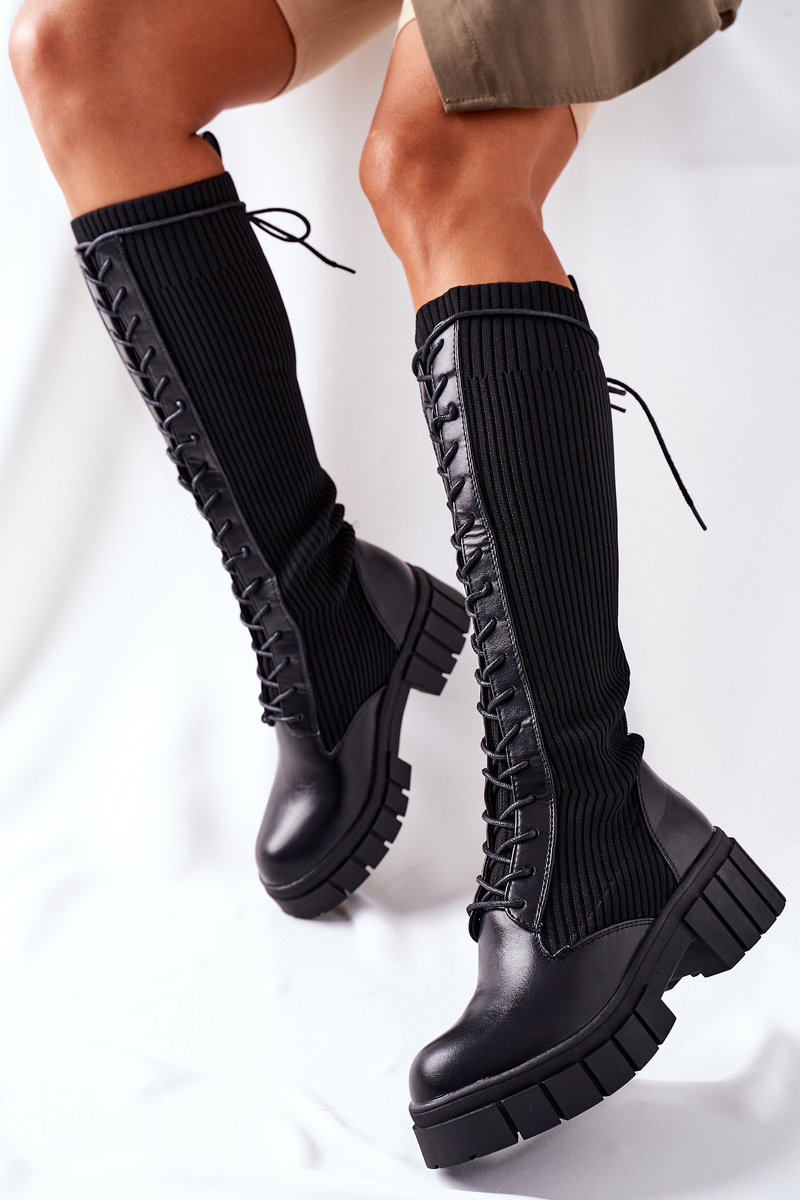 Wysokie Kozaki ze Skarpetą Czarne Monteri