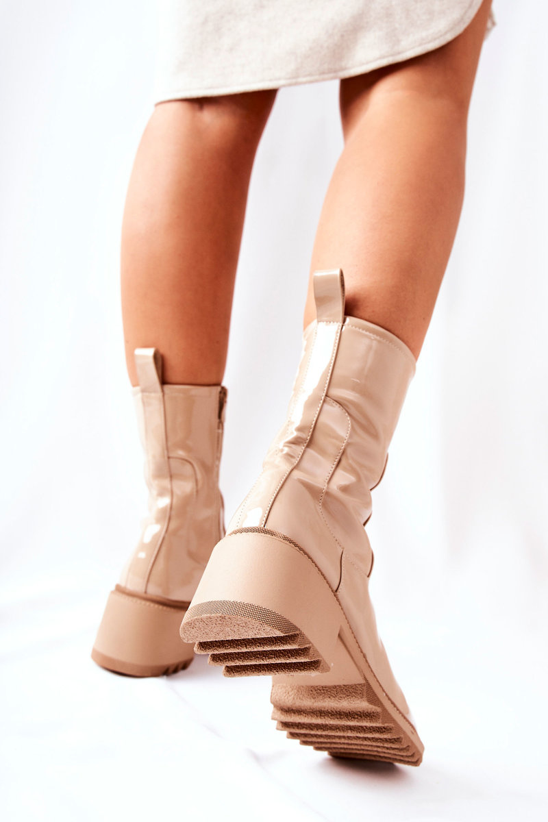 Wysokie Lakierowane Botki Na Obcasie Beżowe Merelien