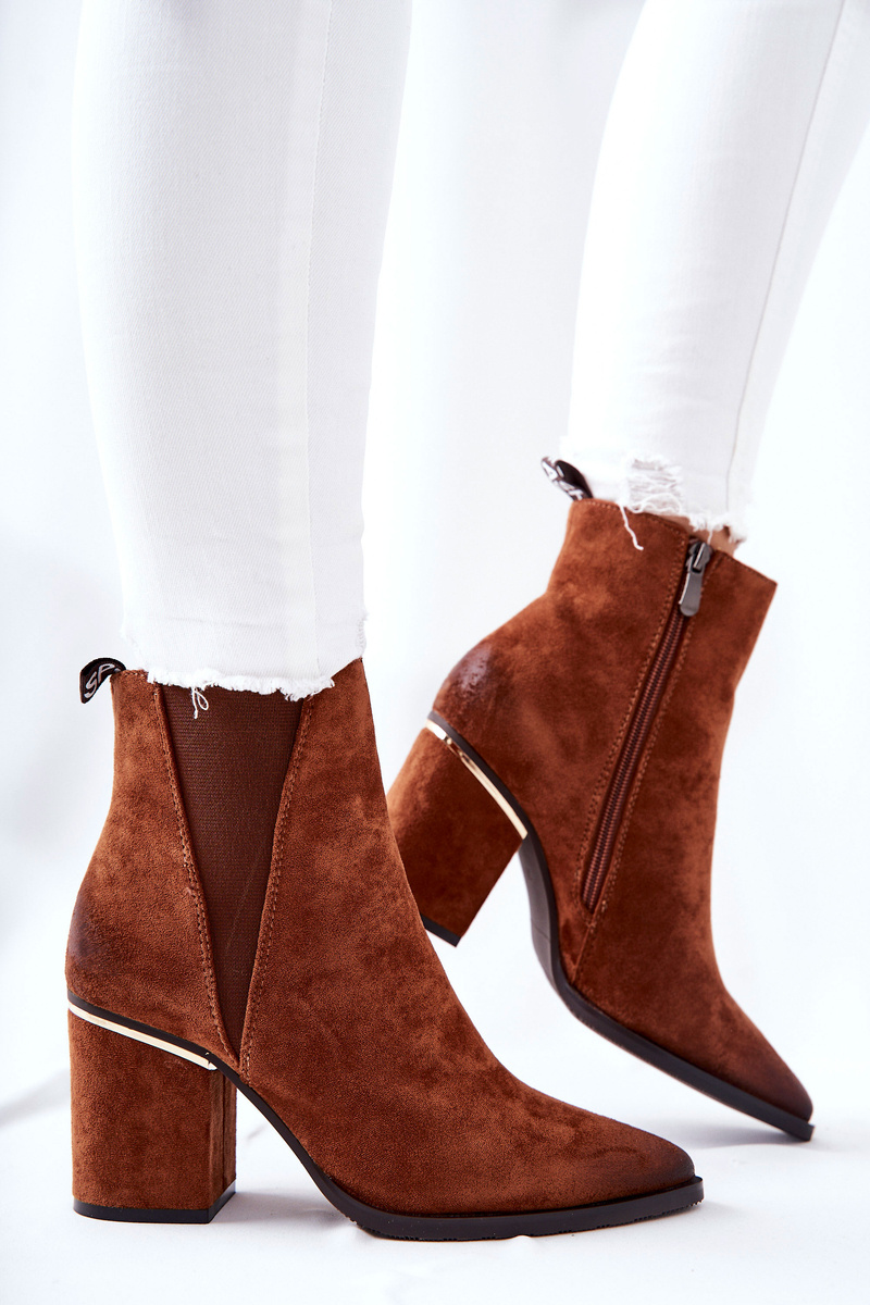 Zamszowe Botki Na Obcasie Brązowe Coriseis