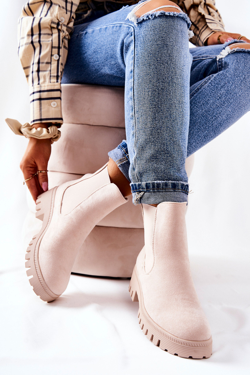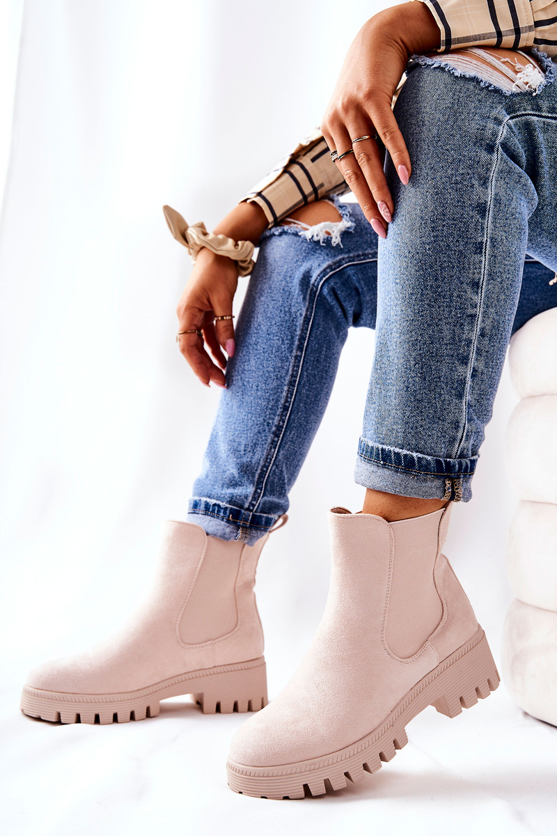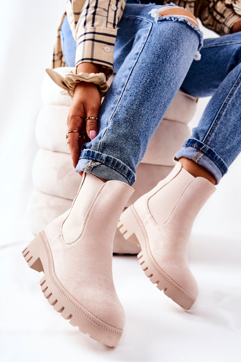Zamszowe Botki Ocieplane Jasnobeżowe Tozzi