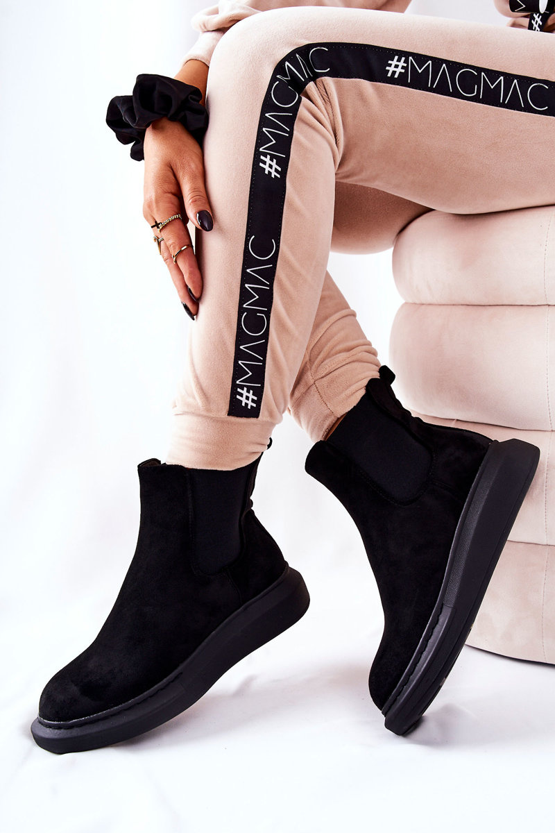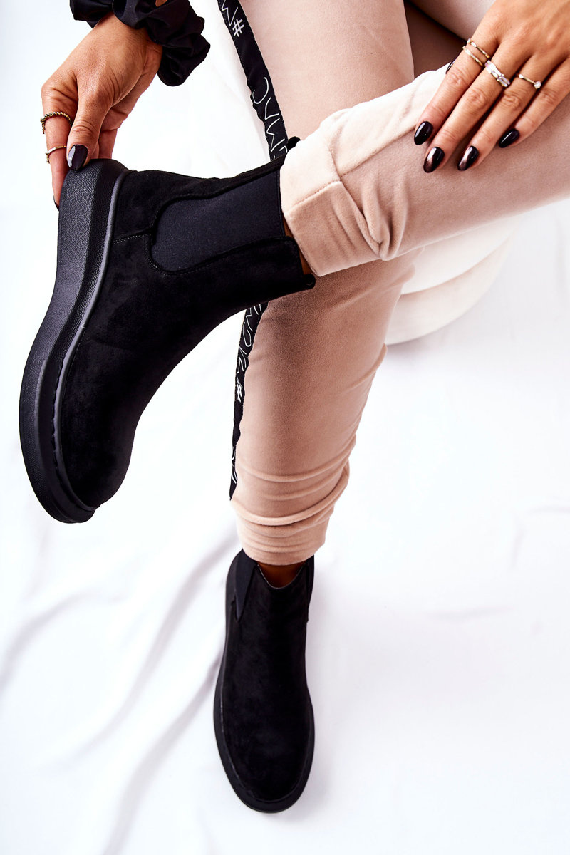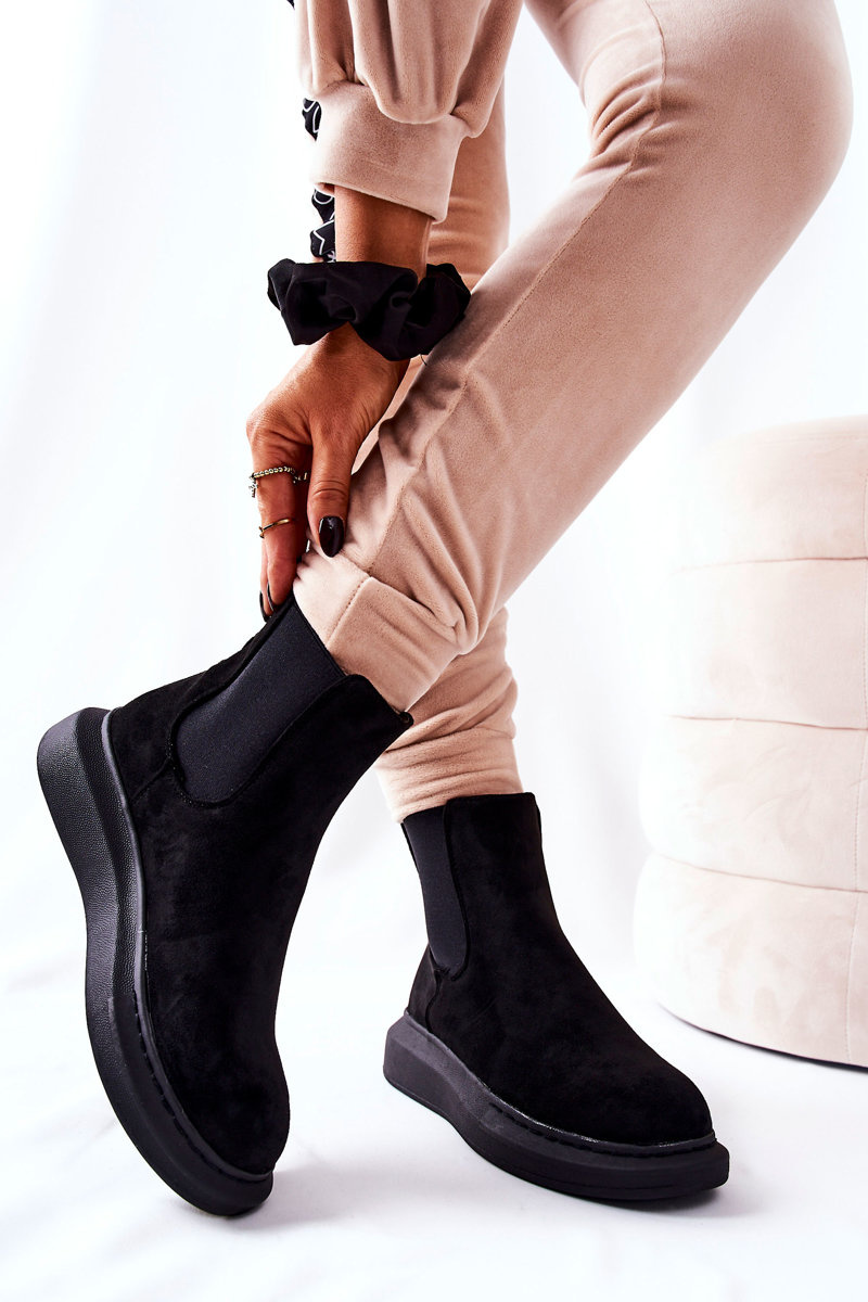 Zamszowe Botki Sztyblety Na Platformie Czarne Marissa