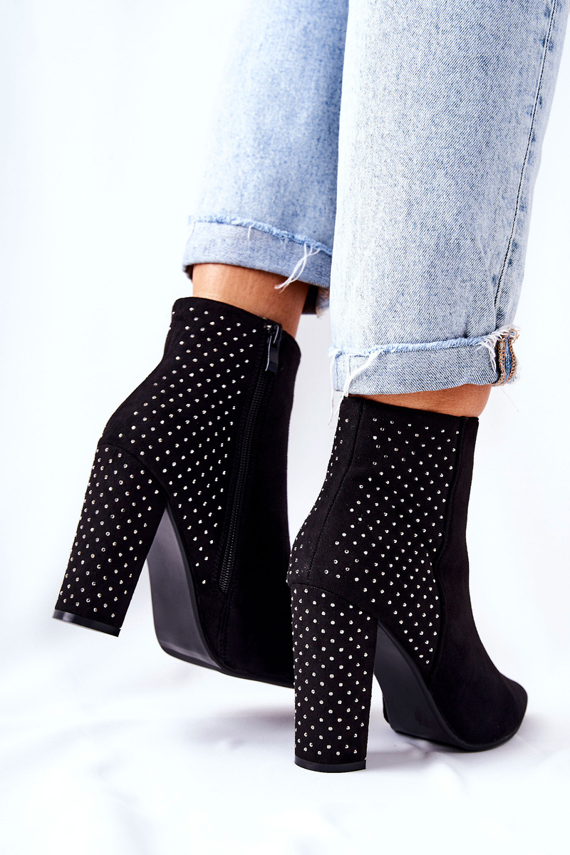 Zamszowe Botki Z Cekinami Czarne Sorienta