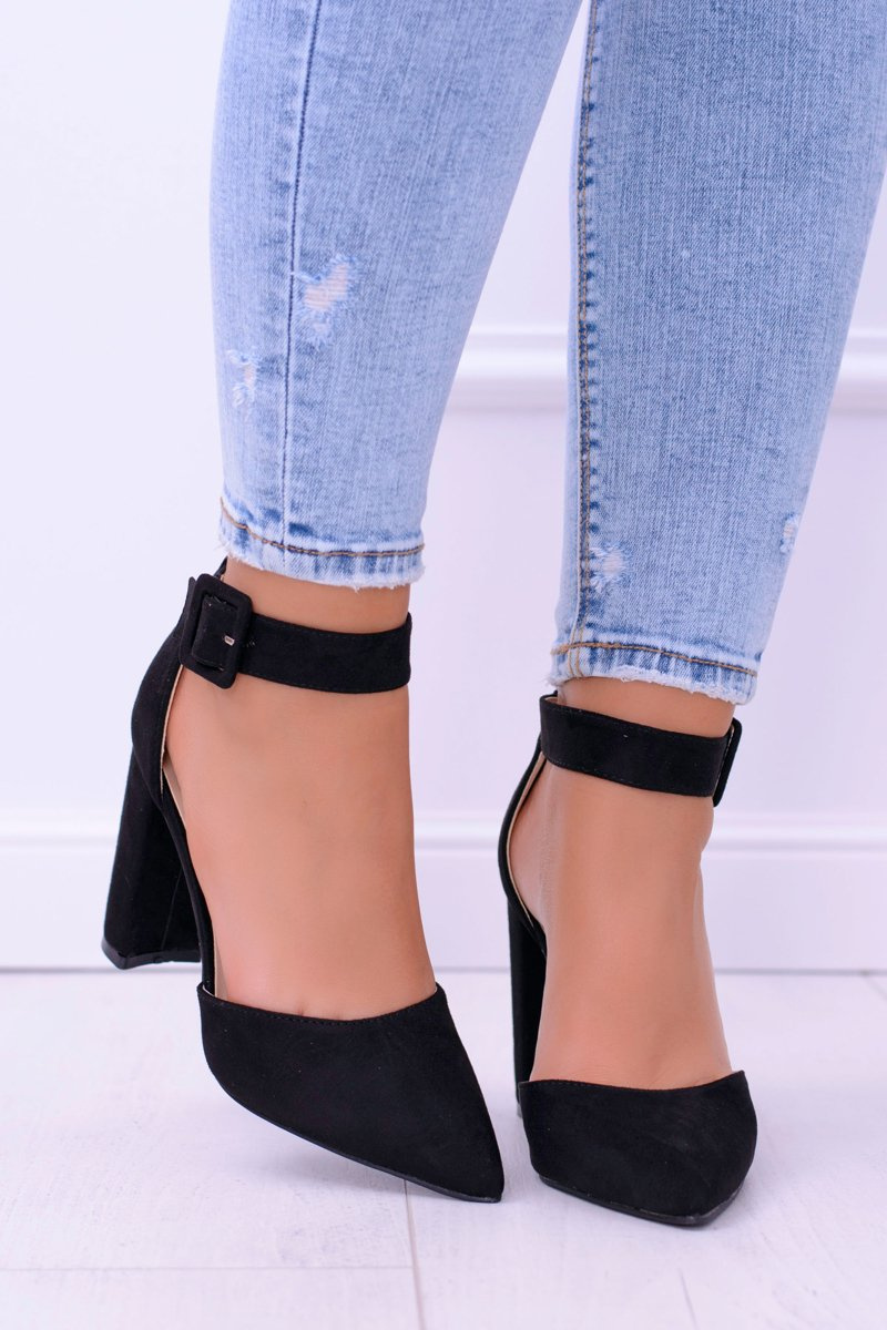 Zamszowe Czarne Czółenka na Słupku Harinta