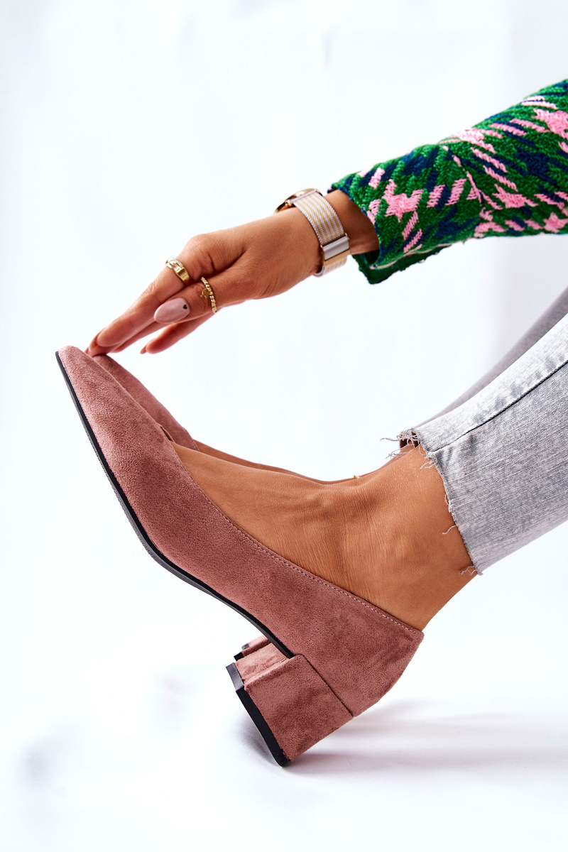 Zamszowe Czółenka Na Słupku Różowe Rossie
