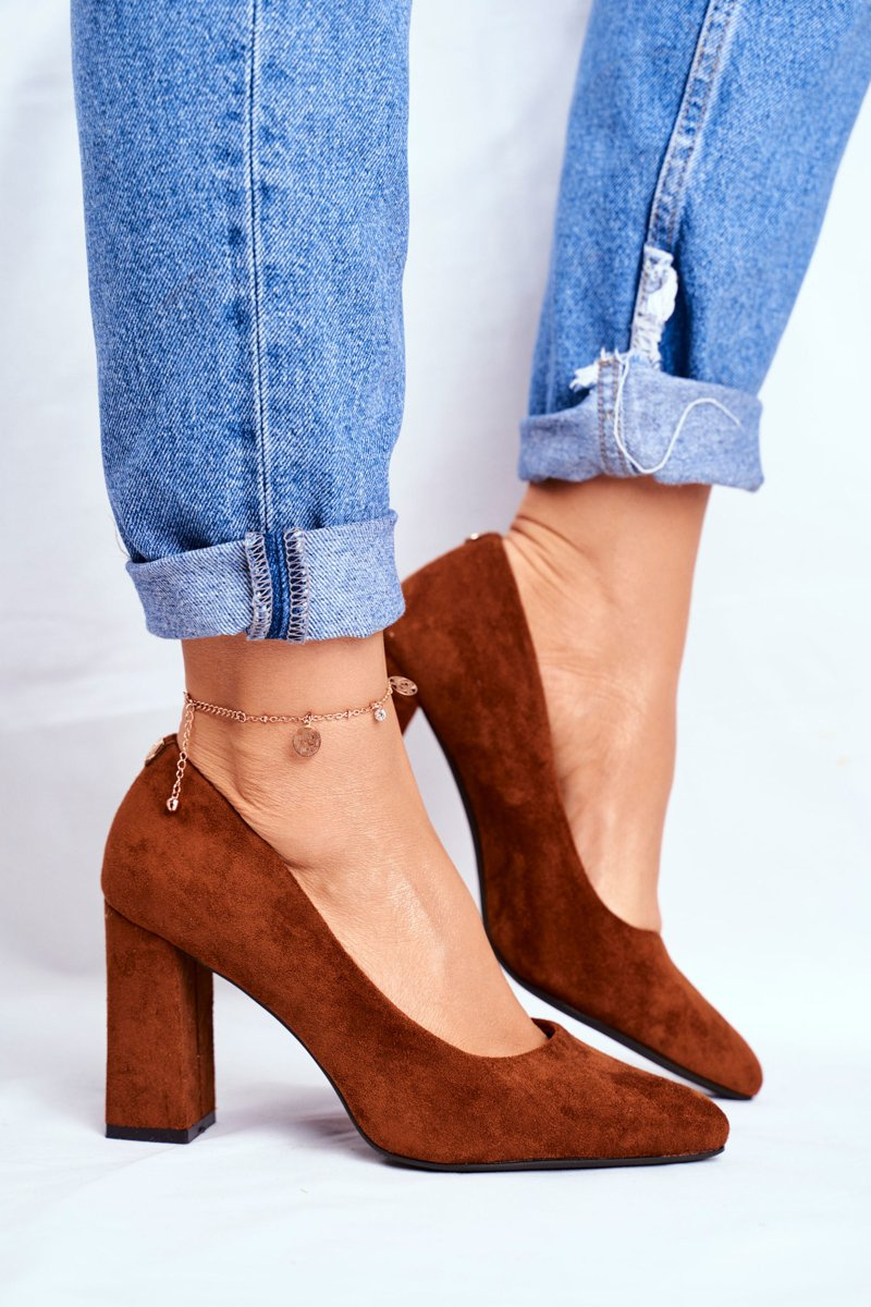 Zamszowe Czółenka Na Słupku Sergio Leone PB216 Camel