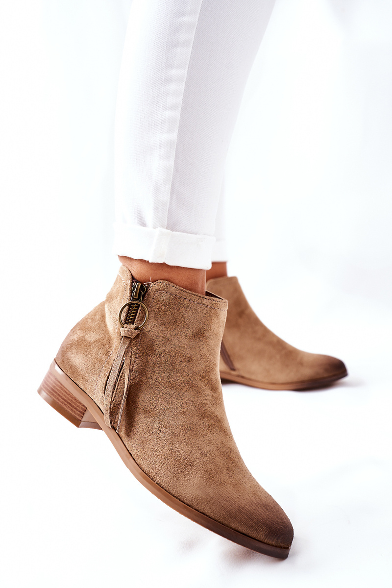 Zamszowe Damskie Botki Ocieplane Beżowe Janice