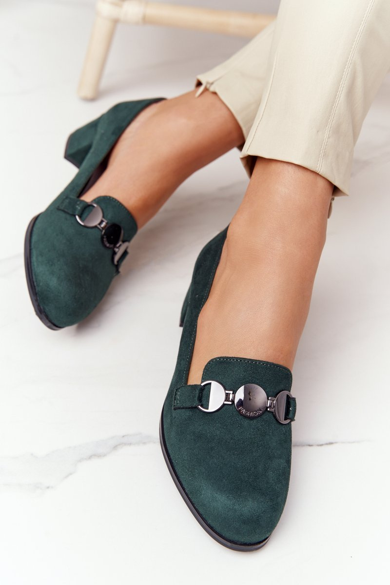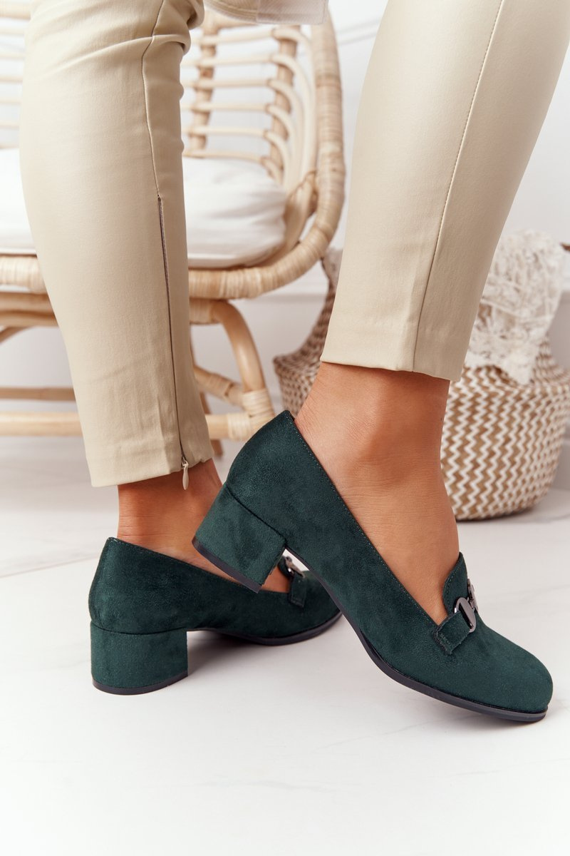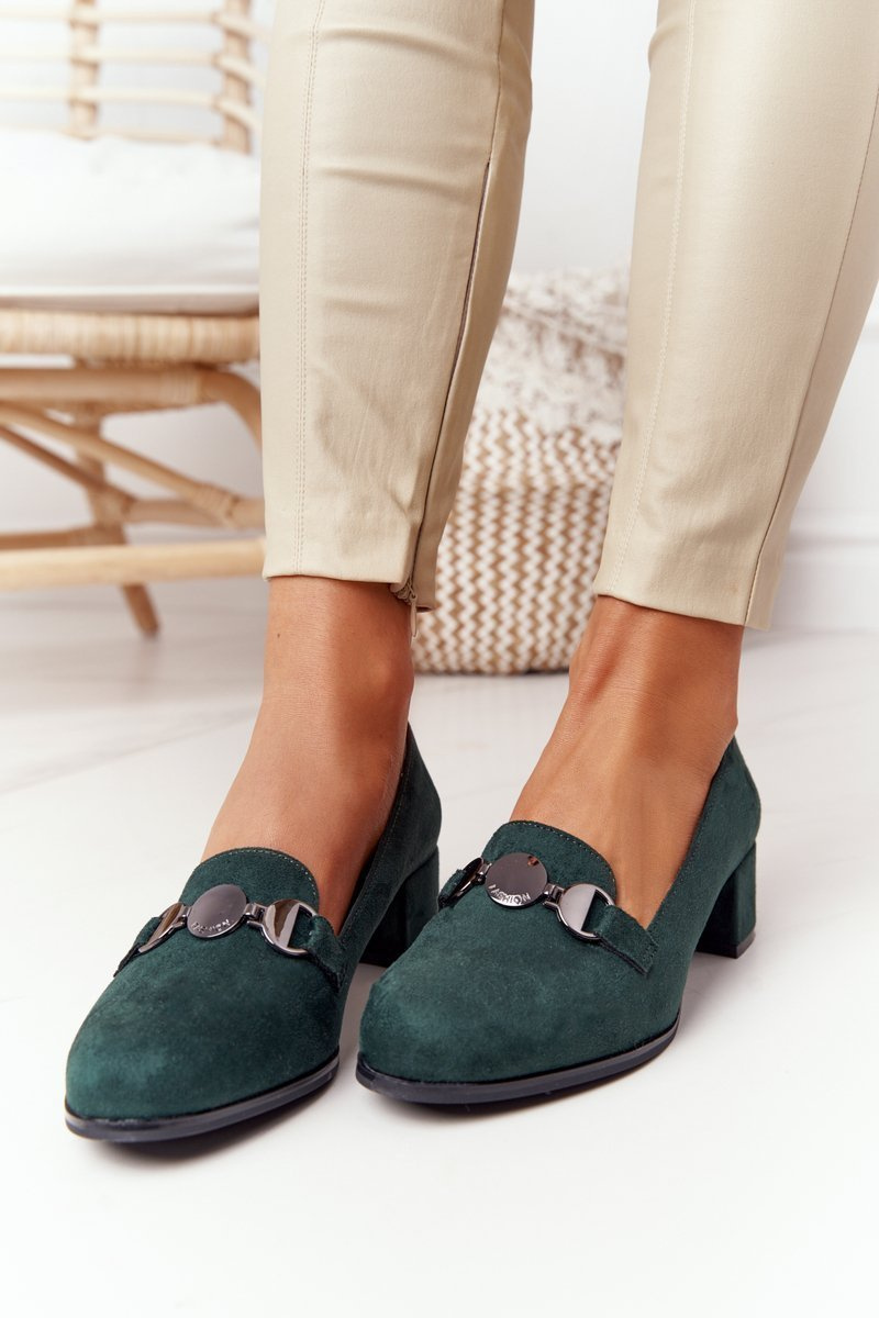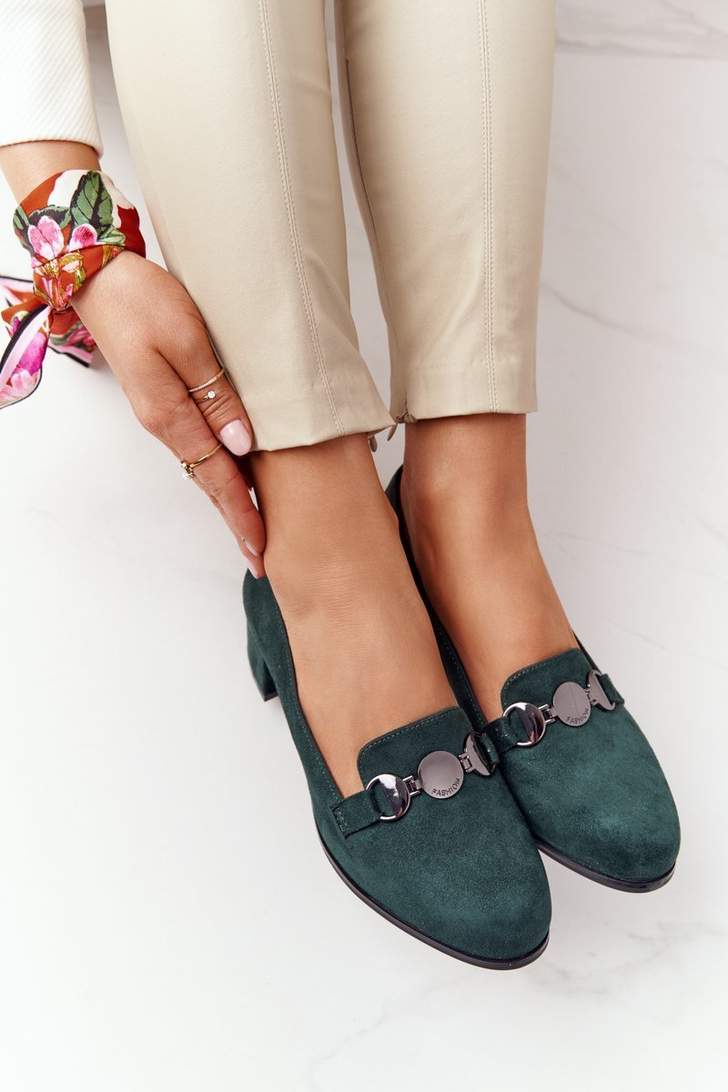 Zamszowe Półbuty Na Obcasie Sergio Leone PB148 Zielone