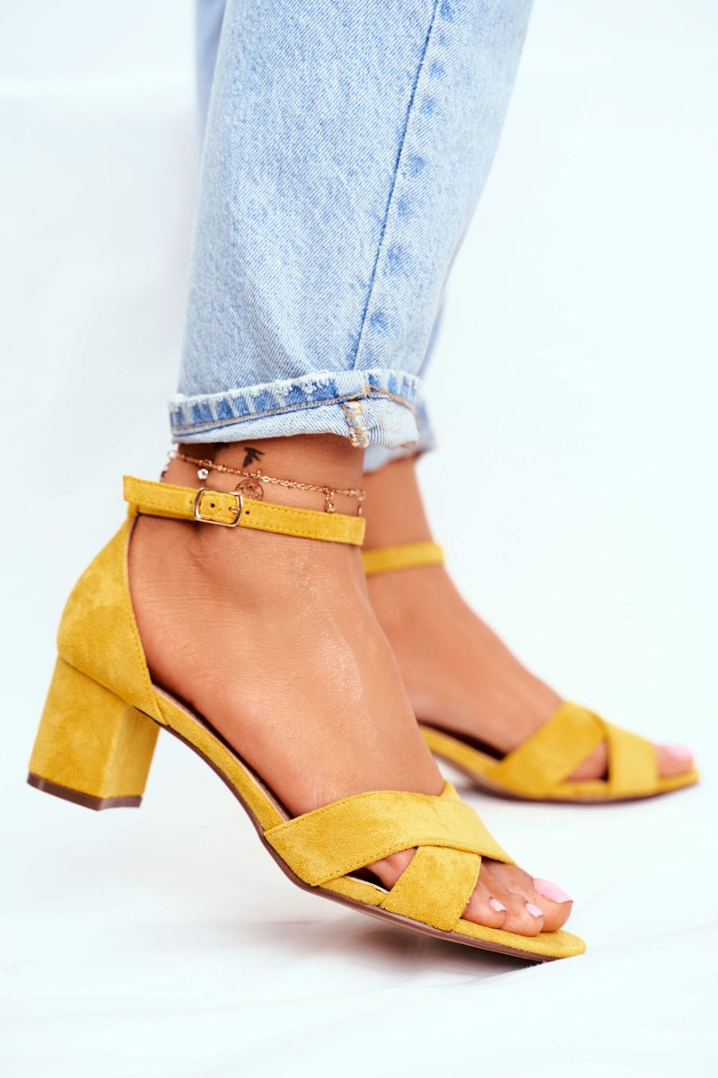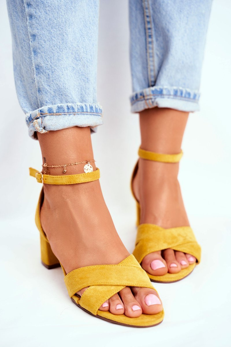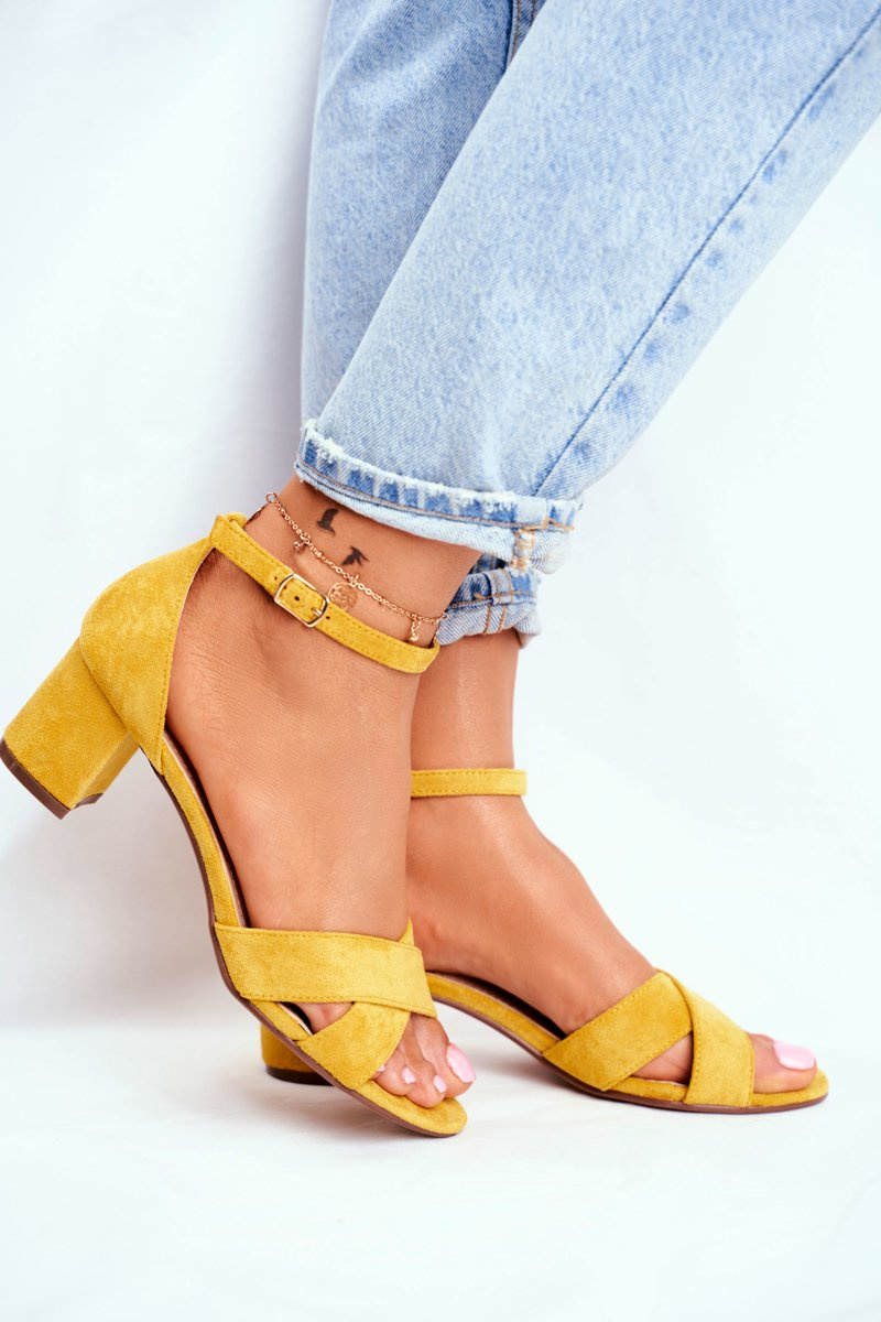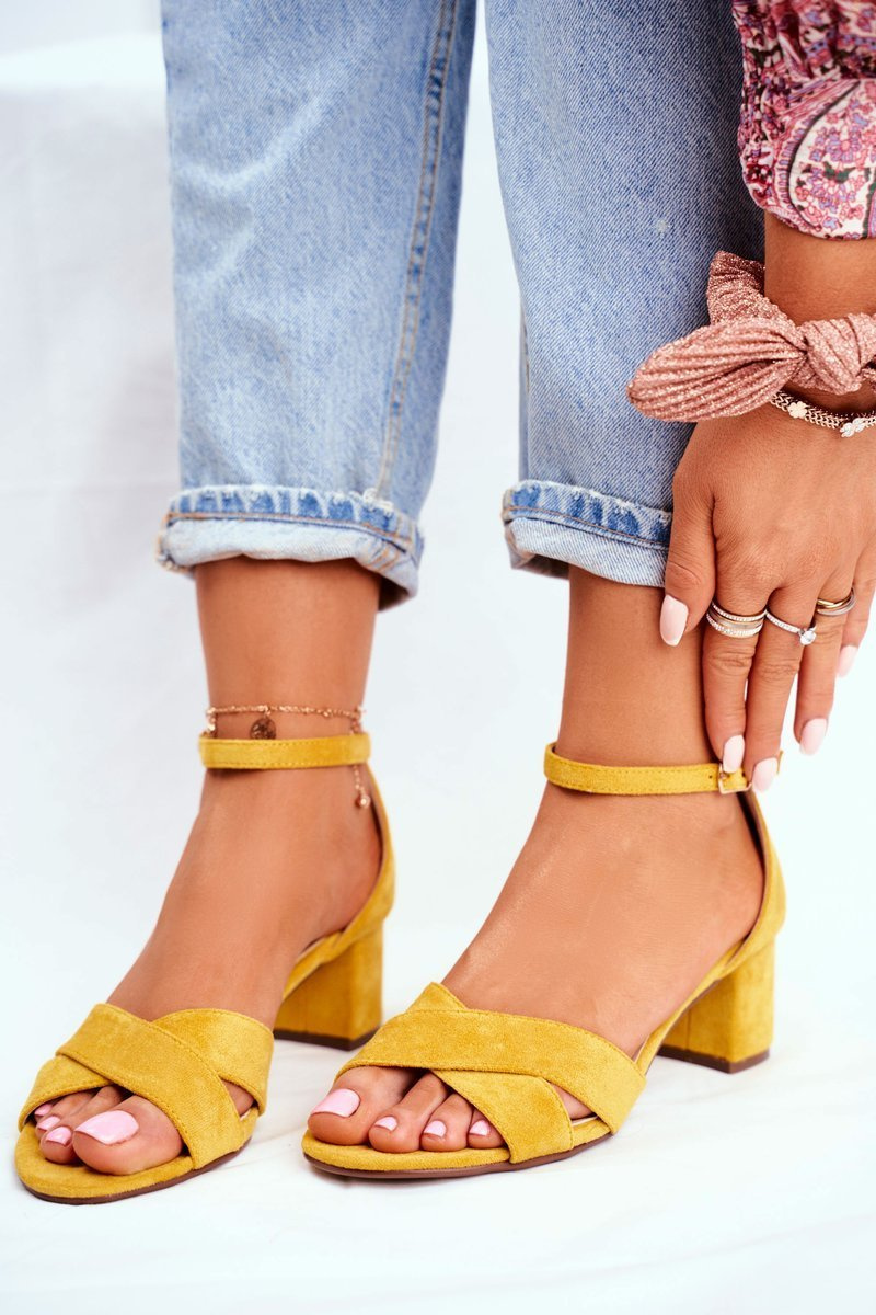 Opinie o Zamszowe Sandałki na Słupku Żółte Nela