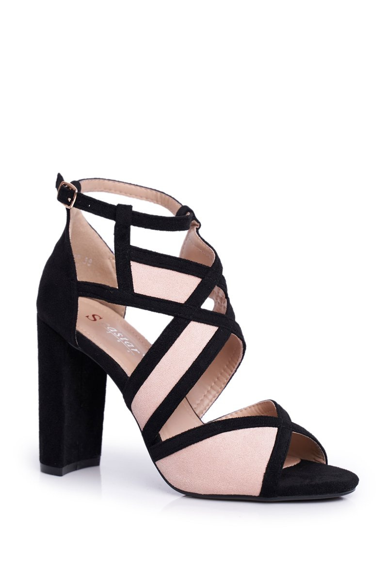 Zamszowe Sandały Na Słupku Czarno-Różowe Emolly