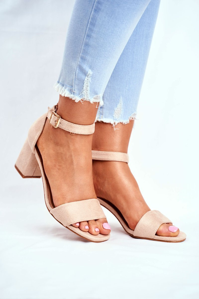 Zamszowe Sandały Na Słupku Vinceza 20-17058 Beżowe