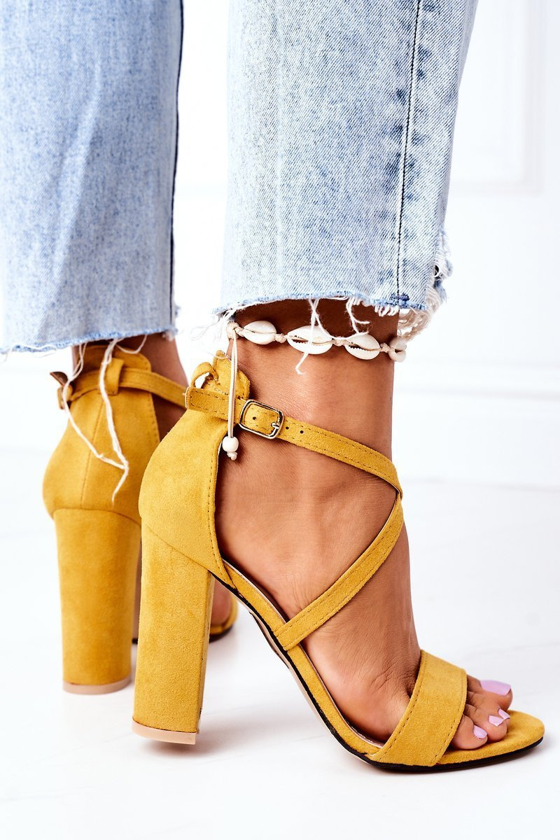 Zamszowe Sandały Na Słupku Żółte Dance With Me