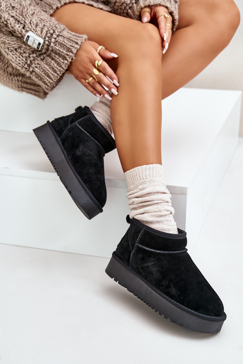 Zamszowe Śniegowce Damskie Na Platformie Czarne Nereviana