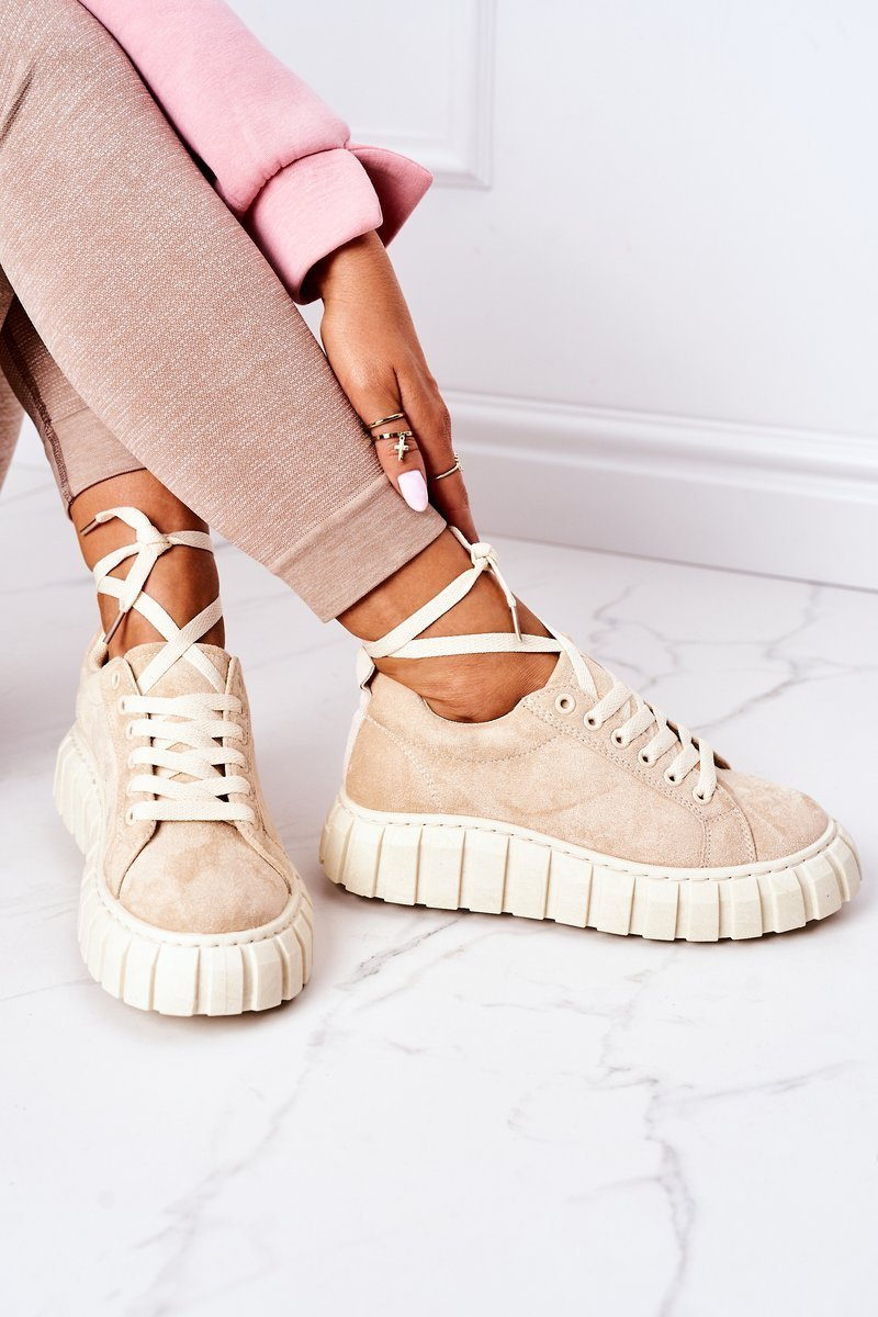Zamszowe Tenisówki Na Platformie Beżowe Whatever