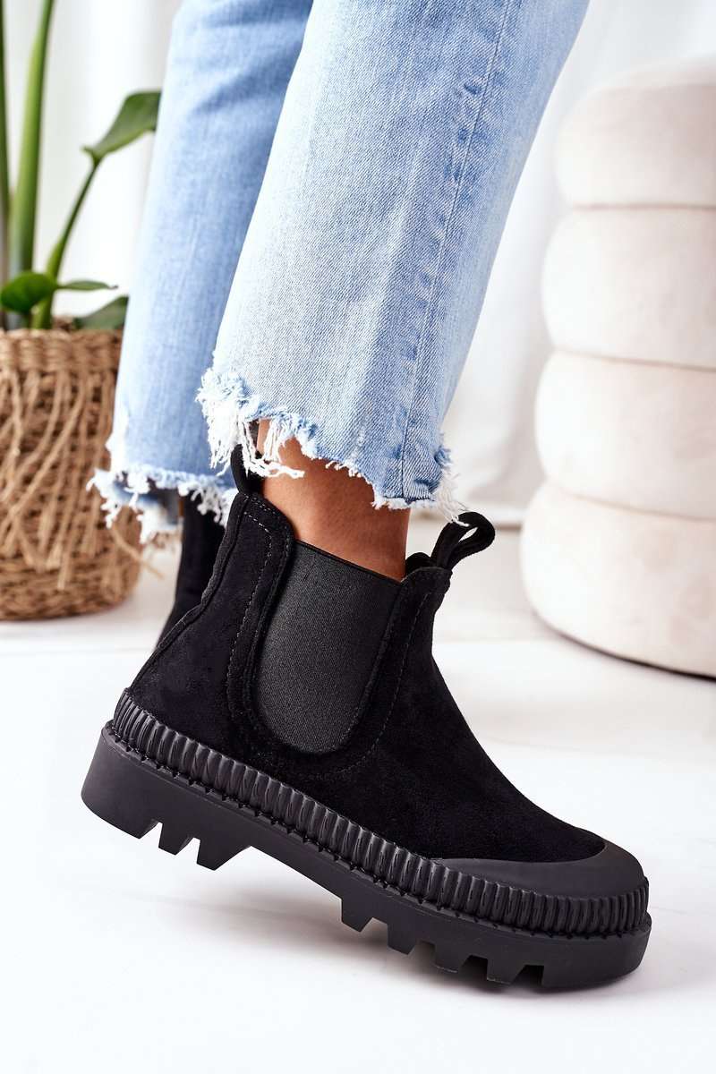 Zamszowe Workery Na Platformie Czarne Come With Me