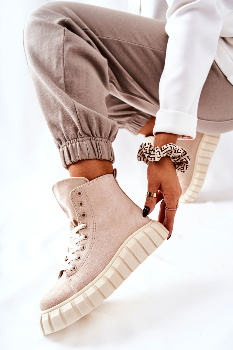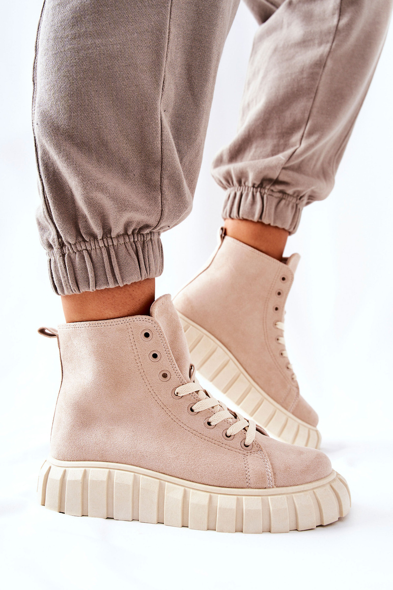 Zamszowe Wysokie Trampki Na Platformie Beżowe Meniphise